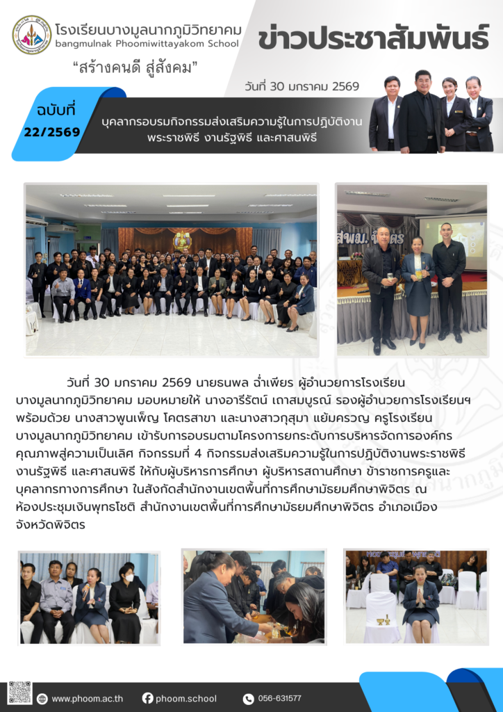 บุคลากรอบรมกิจกรรมส่งเสริมความรู้ในการปฏิบัติงานพระราชพิธี งานรัฐพิธี และศาสนพิธีBy โรงเรียนบางมูลนากภูมิวิทยาคม / 06/02/2026
