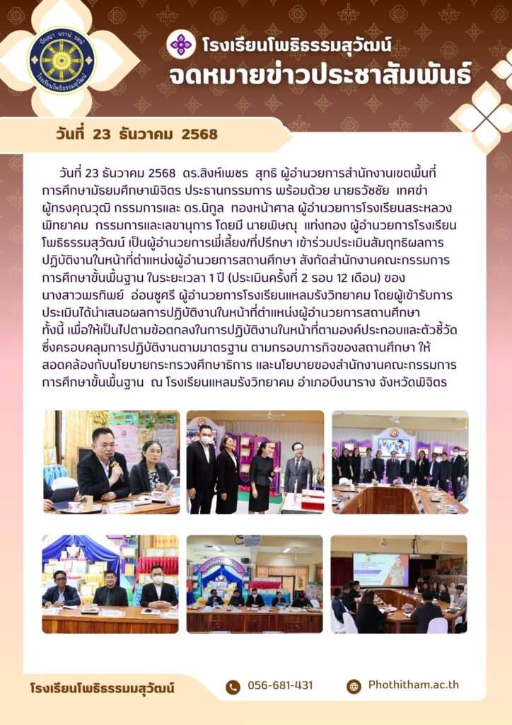 ประเมินสัมฤทธิผลการปฏิบัติงานในหน้าที่ ตำแหน่งผู้อำนวยการสถานศึกษา สังกัดสำนักงานคณะกรรมการการศึกษาขั้นพื้นฐาน ในระยะเวลา 1 ปี (ประเมินครั้งที่ 2 รอบ 12 เดือน) ของ นางสาวพรทิพย์ อ่อนชูศรี ผู้อำนวยการโรงเรียนแหลมรังวิทยาคม โ