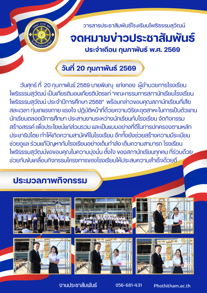 มอบเกียรติบัตรแก่ “คณะกรรมการสภานักเรียนโรงเรียนโพธิธรรมสุวัฒน์ ประจำปีการศึกษา 2568”By โรงเรียนโพธิธรรมสุวัฒน์ / 06/04/2026