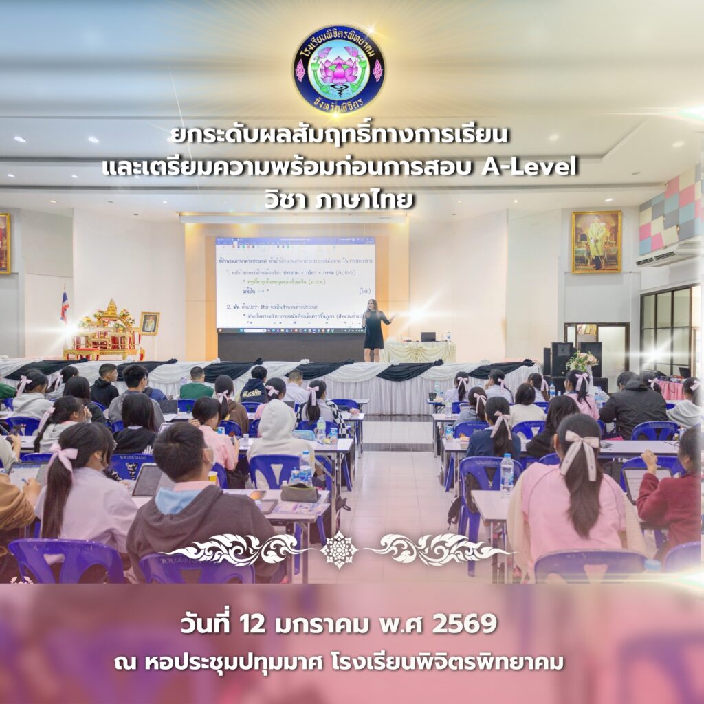 ได้มอบหมายให้คณะครูโรงเรียนพิจิตรพิทยาคม นำนักเรียนเข้าร่วมกิจกรรม ยกระดับผลสัมฤทธิ์ทางการเรียนและเตรียมความพร้อมก่อนการสอบ A-Level ซึ่งจัดขึ้นระหว่างวันที่ 12–22 มกราคม พ.ศ. 2569 โดยมีวัตถุประสงค์เพื่อเสริมสร้างความรู้ ความเข้าใจ และพัฒนาทักษะทางวิชาการของนักเรียนอย่างเป็นระบบ