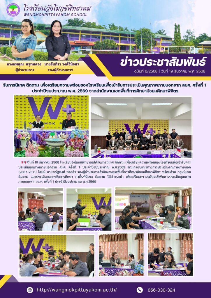 วันที่ 19 ธันวาคม 2568 โรงเรียนวังโมกข์พิทยาคมได้รับการนิเทศ ติดตาม เพื่อเตรียมความพร้อมของโรงเรียนเพื่อเข้ารับการประเมินคุณภาพภายนอกจาก สมศ. ครั้งที่ 1 ประจำปีงบประมาณ พ.ศ.2569 ตามกรอบแนวทางการประเมินคุณภาพภายนอก (2567-2571) โดยมีนายวณัฐพงศ์ ทองคำ รองผู้อำนวยการสำนักงานเขตพื้นที่การศึกษามัธยมศึกษาพิจิตร พร้อมด้วย กลุ่มนิเทศ ติดตาม และประเมินผลการจัดการศึกษา ลงพื้นที่นิเทศ ติดตาม ให้คำแนะนำ เพื่อเตรียมความพร้อมเข้ารับการประเมินคุณภาพภายนอกจาก สมศ.