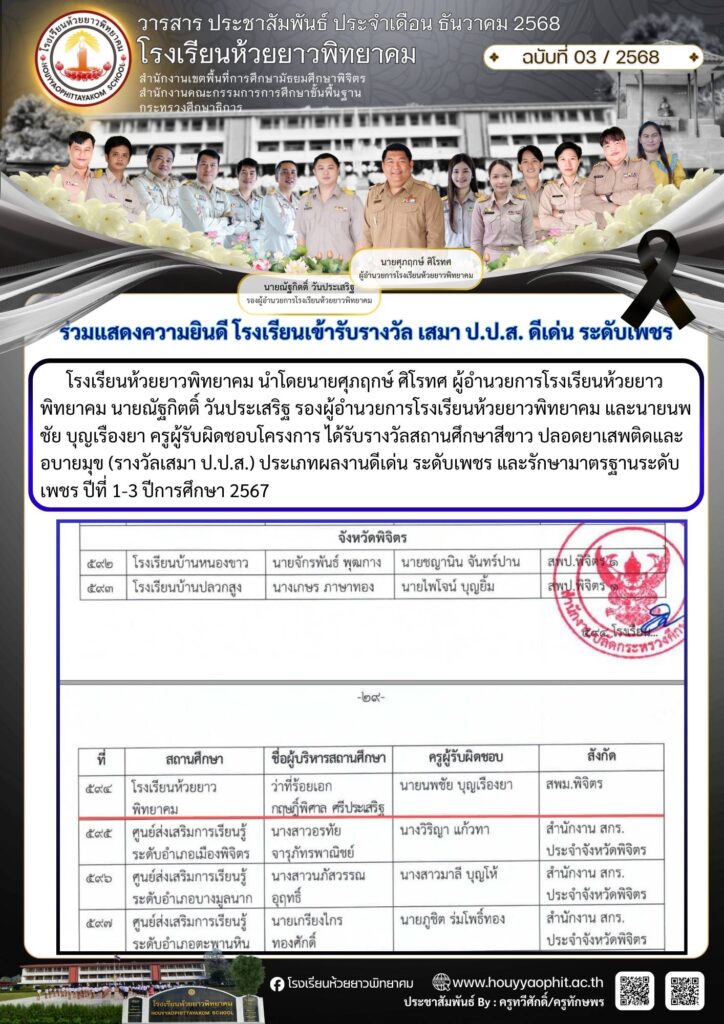 ร่วมแสดงความยินดี โรงเรียนเข้ารับรางวัล เสมา ป.ป.ส. ดีเด่น ระดับเพชรBy ประชาสัมพันธ์ โรงเรียนห้วยยาวพิทยาคม / 03/12/2025