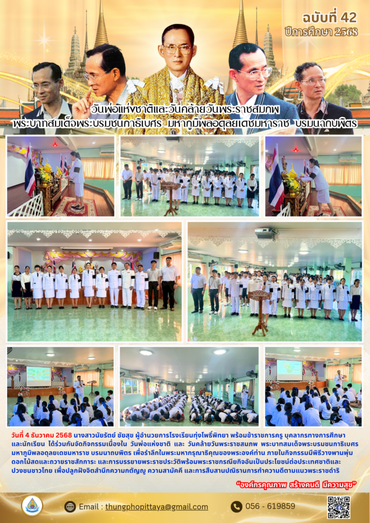 วันพ่อแห่งชาติและวันคล้ายวันพระราชสมภาพ พระบาทสมเด็จพระบรมชนกาธิเบศร มหาภูมิพลอดุลยเดชมหาราช บรมนาถบพิตรBy โรงเรียนทุ่งโพธิ์พิทยา / 04/12/2025