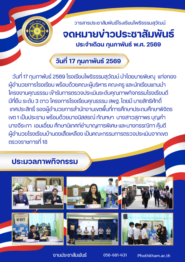 โครงงานคุณธรรม เข้ารับการตรวจประเมินระดับคุณภาพกิจกรรมโรงเรียนดีBy โรงเรียนโพธิธรรมสุวัฒน์ / 06/04/2026 มีที่ยืน ระดับ 3 ดาว โครงการโรงเรียนคุณธรรม สพฐ.