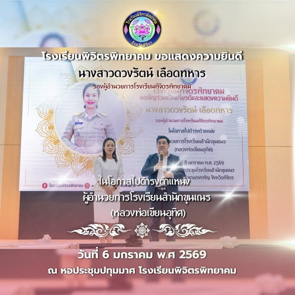 โรงเรียนพิจิตรพิทยาคม ขอแสดงความยินดีกับนางสาวดวงรัตน์ เลือดทหาร รองผู้อำนวยการโรงเรียนพิจิตรพิทยาคมBy โรงเรียนพิจิตรพิทยาคม / 07/01/2026