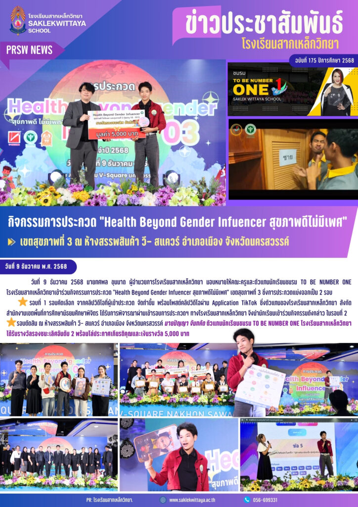 คณะครูและตัวแทนนักเรียนชมรม TO BE NUMBER ONE โรงเรียนสากเหล็กวิทยาเข้าร่วมกิจกรรมการประกวด”Health Beyond Gender Infuencer สุขภาพดีไม่มีเพศ”เขตสุขภาพที่ 3 โดยนายปัญญา จันทคัด ตัวแทนนักเรียนชมรม TO BE NUMBER ONE โรงเรียนสากเหล็กวิทยา ได้รับรางวัลรองชนะเลิศอันดับ 2 พร้อมโล่ประกาศเกียรติคุณและเงินรางวัล 5,000 บาท