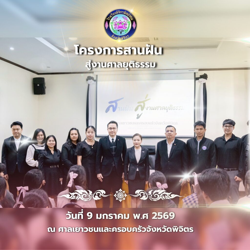 เข้าร่วมโครงการสานฝัน สู่งานศาลยุติธรรม ณ ศาลเยาวชนและครอบครัวจังหวัดพิจิตร ในการเข้าร่วมพิธีเปิด โดยนางรฐา เขียวโสภณ เมฆชมภู ผู้พิพากษาหัวหน้าศาลเยาวชนและครอบครัวจังหวัดพิจิตร พร้อมด้วยผู้พิพากษา ผู้พิพากษาสมทบ ผู้ประนีประนอมประจำศาลเยาวชนฯ จังหวัดพิจิตร และบุคลากรในหน่วยงานที่เกี่ยวข้องกับงานกระบวนการยุติธรรม