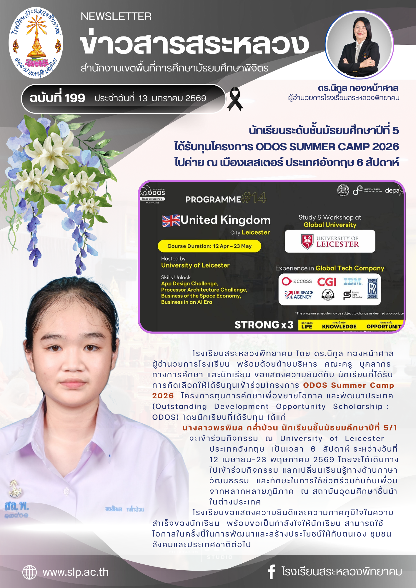 ข่าวสพม.พิจิตร วันที่ 22 มกราคม 2569 – สพม.พิจิตร ร่วมรับชมรายการ “พฤหัสเช้า ข่าว สพฐ.” ครั้งที่ 3/2569 ผ่านระบบออนไลน์ เพื่อรับฟังข่าวสาร นโยบาย ข้อราชการ และแนวทางการจัดการศึกษาจากสำนักงานคณะกรรมการการศึกษาขั้นพื้นฐาน