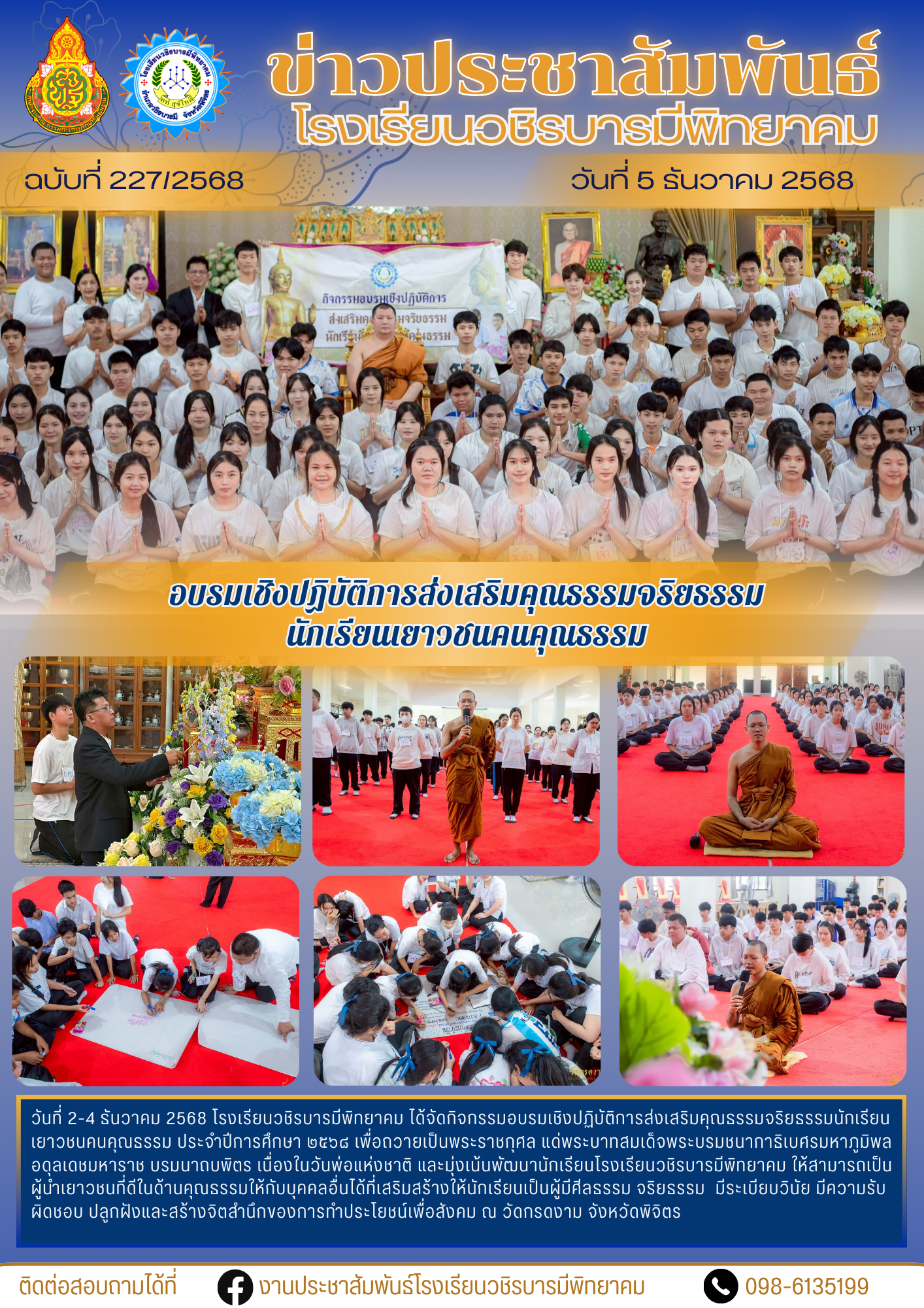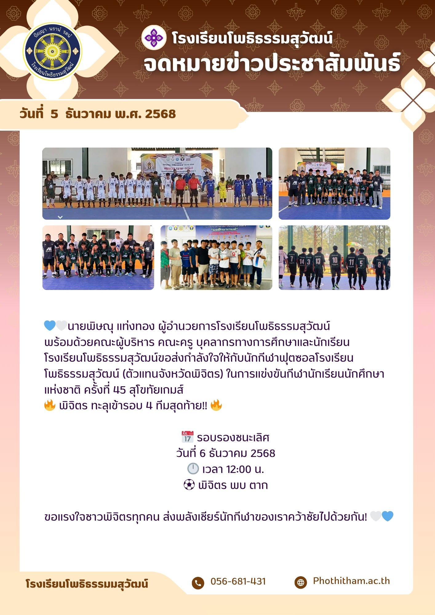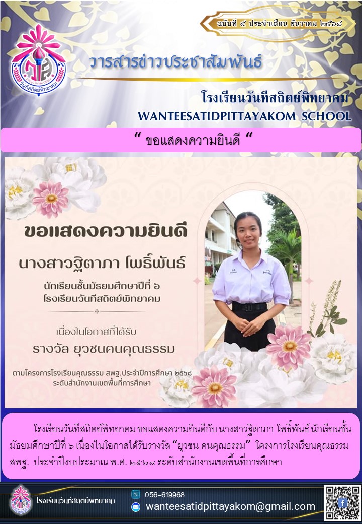 --- สำนักงานเขตพื้นที่การศึกษามัธยมศึกษาพิจิตร ยินดีต้อนรับ --- ข่าวกิจกรรมโรงเรียน สพม.พิจิตร ขอขอบพระคุณองค์การบริหารส่วนตำบลสามง่ามที่ให้ความอนุเคราะห์ดูแลความเรียบร้อยของถนนบริเวณทางเข้าสถานศึกษา 🩷💚 โรงเรียนสามง่ามชนูปถัมภ์ 🩷💚 ทำบุญตักบาตรข้าวสารอาหารแห้ง เนื่องในวันขึ้นปีใหม่ 2569 มอบของขวัญปีใหม่ ให้แก่เจ้าหน้าที่ตำรวจจราจรจากสถานีตำรวจภูธรอำเภอโพทะเล กิจกรรมการเข้าค่ายพักแรมลูกเสือ เนตรนารี และยุวกาชาด กิจกรรม “วันครู 16 มกรา” รับมอบเกียรติบัตร “เชิดชูเกียรติ รางวัลเสมา ป.ป.ส. ประเภทผลงานดีเด่นระดับเงิน” รางวัล เนื่องในวันครู 16 มกราคม โครงการพัฒนาศักยภาพสร้างจิตสำนึก และปลูกฝังวินัยจราจรในการใช้รถใช้ถนน โครงการนักเรียนรุ่นใหม่มีใบขับขี่ การประเมินผลการปฏิบัติงานการเตรียมความพร้อมและพัฒนาอย่างเข้ม ตำแหน่ง ครูผู้ช่วย การแข่งขันงานศิลปหัตถกรรมนักเรียน ครั้งที่ 73 “หัตถสิริศิลป์ล้ำค่า เทิดไท้องค์ราชชนนี ” การประชุมคณะกรรมการสถานศึกษาขั้นพื้นฐานของโรงเรียนโพธิธรรมสุวัฒน์ การประกวดการเดินสวนสนามยุวกาชาด เนื่องในวันคล้ายวันสถาปนายุวกาชาด ประชุมการจัดทำและปรับปรุงหลักสูตรสถานศึกษา เหล่ากาชาดจังหวัดพิจิตร ออกหน่วยรับบริจาคโลหิต บันทึกข้อตกลงความร่วมมือ (MOU) เป็นภาคีเครือข่ายในโครงการโรงเรียนสีขาวปลอดยาเสพติด และอบายมุขในสถานศึกษา การอบรมตามโครงการยกระดับการบริหารจัดการองค์กรคุณภาพสู่ความเป็นเลิศ จดหมายข่าวโรงเรียนแหลมรังวิทยาคม ประจำเดือนมีนาคม ฉบับที่ 31/2569 วันที่ 16 มีนาคม 2569 จดหมายข่าวโรงเรียนแหลมรังวิทยาคม ประจำเดือนมีนาคม ฉบับที่ 30/2569 วันที่ 16 มีนาคม 2569 จดหมายข่าวโรงเรียนแหลมรังวิทยาคม ประจำเดือนมีนาคม ฉบับที่ 29/2569 วันที่ 13 มีนาคม 2569 จดหมายข่าวโรงเรียนแหลมรังวิทยาคม ประจำเดือนมีนาคม ฉบับที่ 28/2569 วันที่ 13 มีนาคม 2569 จดหมายข่าวโรงเรียนแหลมรังวิทยาคม ประจำเดือนมีนาคม ฉบับที่ 27/2569 วันที่ 11 มีนาคม 2569 นางสาวนัยรัตน์ ชัยสุข ผู้อำนวยการโรงเรียนทุ่งโพธิ์พิทยา ได้มอบหมายให้ นายวิเชียร เทพโสภา คุณครูโรงเรียนทุ่งโพธิ์พิทยา เข้าร่วมการประชุมประชาคมหมู่บ้าน เพื่อร่วมรับฟังความคิดเห็นของประชาชนในพื้นที่ รวมทั้งแลกเปลี่ยนข้อมูลข่าวสารและแนวทางการพัฒนาชุมชนร่วมกับหน่วยงานต่าง ๆ นางสาวนัยรัตน์ ชัยสุข ผู้อำนวยการโรงเรียนทุ่งโพธิ์พิทยา ได้มอบหมายให้ นายกัมปนาท นาคบัว รองผู้อำนวยการโรงเรียน พร้อมด้วย นางสาวภัทราภรณ์ มิ่งมอญ และ นางสาวโสพิณยา พุ่มทุ่ม ครูโรงเรียนทุ่งโพธิ์พิทยา ร่วมงานประจำปี