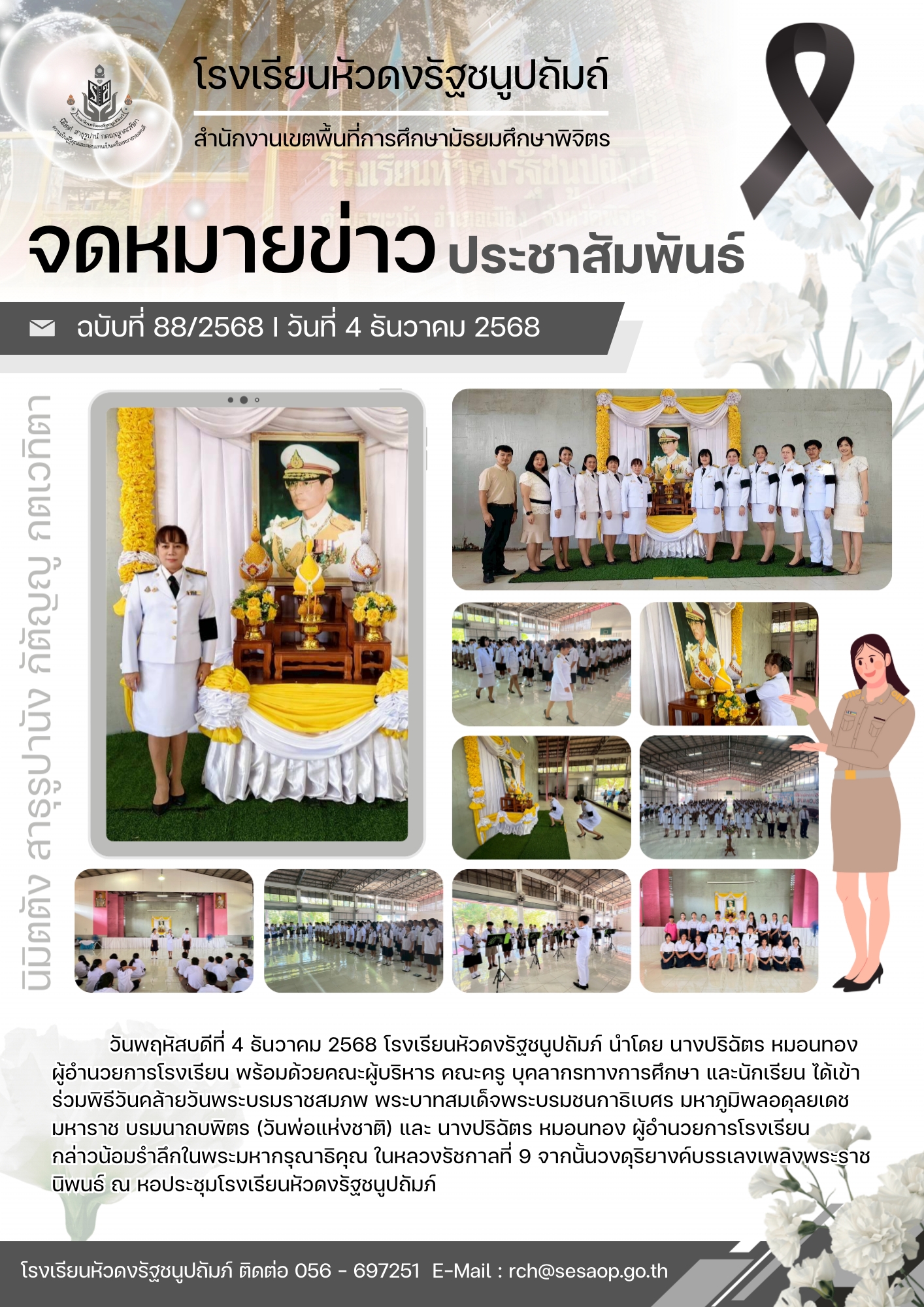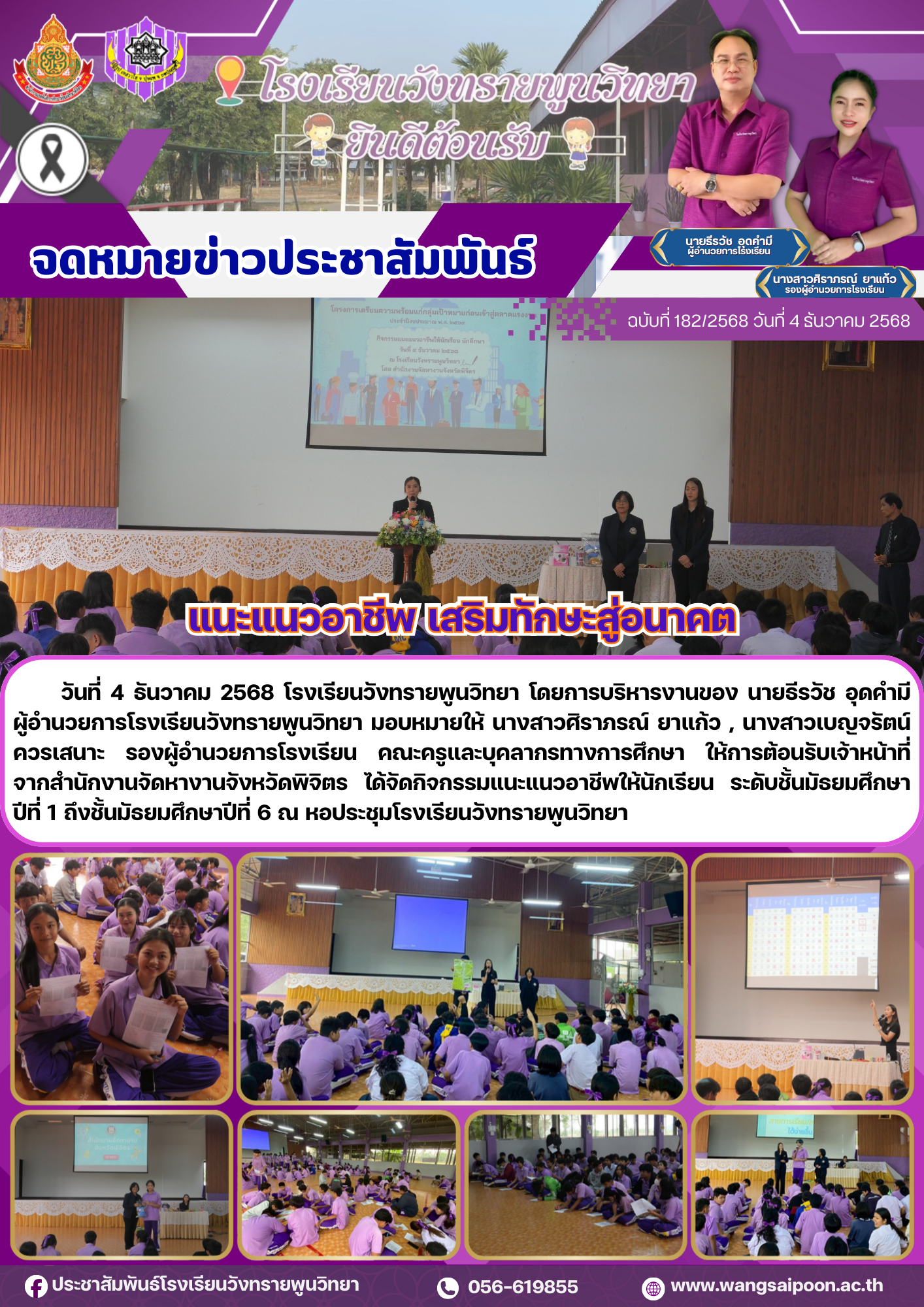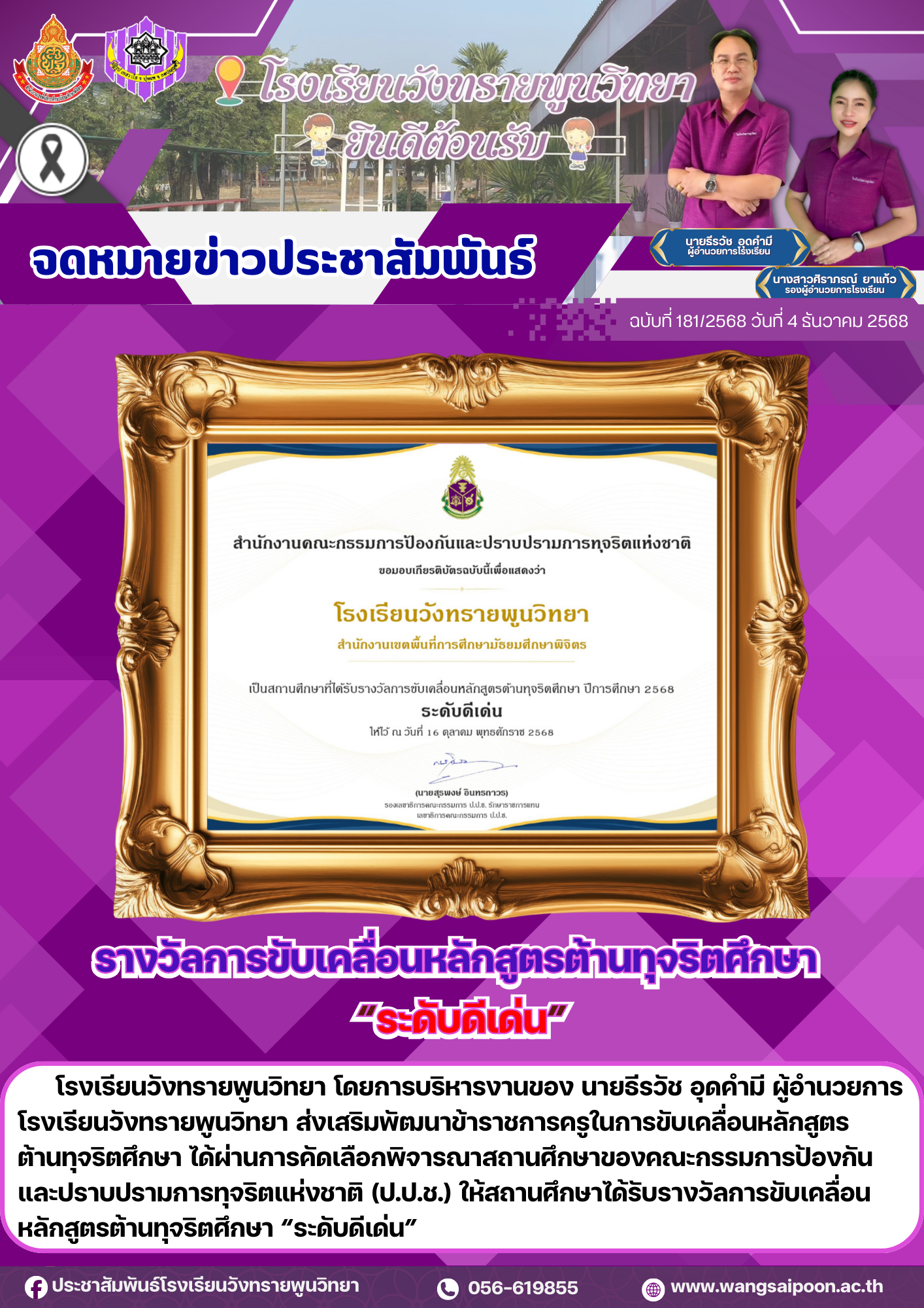 --- สำนักงานเขตพื้นที่การศึกษามัธยมศึกษาพิจิตร ยินดีต้อนรับ --- ข่าวกิจกรรมโรงเรียน สพม.พิจิตร ขอขอบพระคุณองค์การบริหารส่วนตำบลสามง่ามที่ให้ความอนุเคราะห์ดูแลความเรียบร้อยของถนนบริเวณทางเข้าสถานศึกษา 🩷💚 โรงเรียนสามง่ามชนูปถัมภ์ 🩷💚 ทำบุญตักบาตรข้าวสารอาหารแห้ง เนื่องในวันขึ้นปีใหม่ 2569 มอบของขวัญปีใหม่ ให้แก่เจ้าหน้าที่ตำรวจจราจรจากสถานีตำรวจภูธรอำเภอโพทะเล กิจกรรมการเข้าค่ายพักแรมลูกเสือ เนตรนารี และยุวกาชาด กิจกรรม “วันครู 16 มกรา” รับมอบเกียรติบัตร “เชิดชูเกียรติ รางวัลเสมา ป.ป.ส. ประเภทผลงานดีเด่นระดับเงิน” รางวัล เนื่องในวันครู 16 มกราคม โครงการพัฒนาศักยภาพสร้างจิตสำนึก และปลูกฝังวินัยจราจรในการใช้รถใช้ถนน โครงการนักเรียนรุ่นใหม่มีใบขับขี่ การประเมินผลการปฏิบัติงานการเตรียมความพร้อมและพัฒนาอย่างเข้ม ตำแหน่ง ครูผู้ช่วย การแข่งขันงานศิลปหัตถกรรมนักเรียน ครั้งที่ 73 “หัตถสิริศิลป์ล้ำค่า เทิดไท้องค์ราชชนนี ” การประชุมคณะกรรมการสถานศึกษาขั้นพื้นฐานของโรงเรียนโพธิธรรมสุวัฒน์ การประกวดการเดินสวนสนามยุวกาชาด เนื่องในวันคล้ายวันสถาปนายุวกาชาด ประชุมการจัดทำและปรับปรุงหลักสูตรสถานศึกษา เหล่ากาชาดจังหวัดพิจิตร ออกหน่วยรับบริจาคโลหิต บันทึกข้อตกลงความร่วมมือ (MOU) เป็นภาคีเครือข่ายในโครงการโรงเรียนสีขาวปลอดยาเสพติด และอบายมุขในสถานศึกษา การอบรมตามโครงการยกระดับการบริหารจัดการองค์กรคุณภาพสู่ความเป็นเลิศ จดหมายข่าวโรงเรียนแหลมรังวิทยาคม ประจำเดือนมีนาคม ฉบับที่ 31/2569 วันที่ 16 มีนาคม 2569 จดหมายข่าวโรงเรียนแหลมรังวิทยาคม ประจำเดือนมีนาคม ฉบับที่ 30/2569 วันที่ 16 มีนาคม 2569 จดหมายข่าวโรงเรียนแหลมรังวิทยาคม ประจำเดือนมีนาคม ฉบับที่ 29/2569 วันที่ 13 มีนาคม 2569 จดหมายข่าวโรงเรียนแหลมรังวิทยาคม ประจำเดือนมีนาคม ฉบับที่ 28/2569 วันที่ 13 มีนาคม 2569 จดหมายข่าวโรงเรียนแหลมรังวิทยาคม ประจำเดือนมีนาคม ฉบับที่ 27/2569 วันที่ 11 มีนาคม 2569 นางสาวนัยรัตน์ ชัยสุข ผู้อำนวยการโรงเรียนทุ่งโพธิ์พิทยา ได้มอบหมายให้ นายวิเชียร เทพโสภา คุณครูโรงเรียนทุ่งโพธิ์พิทยา เข้าร่วมการประชุมประชาคมหมู่บ้าน เพื่อร่วมรับฟังความคิดเห็นของประชาชนในพื้นที่ รวมทั้งแลกเปลี่ยนข้อมูลข่าวสารและแนวทางการพัฒนาชุมชนร่วมกับหน่วยงานต่าง ๆ นางสาวนัยรัตน์ ชัยสุข ผู้อำนวยการโรงเรียนทุ่งโพธิ์พิทยา ได้มอบหมายให้ นายกัมปนาท นาคบัว รองผู้อำนวยการโรงเรียน พร้อมด้วย นางสาวภัทราภรณ์ มิ่งมอญ และ นางสาวโสพิณยา พุ่มทุ่ม ครูโรงเรียนทุ่งโพธิ์พิทยา ร่วมงานประจำปี