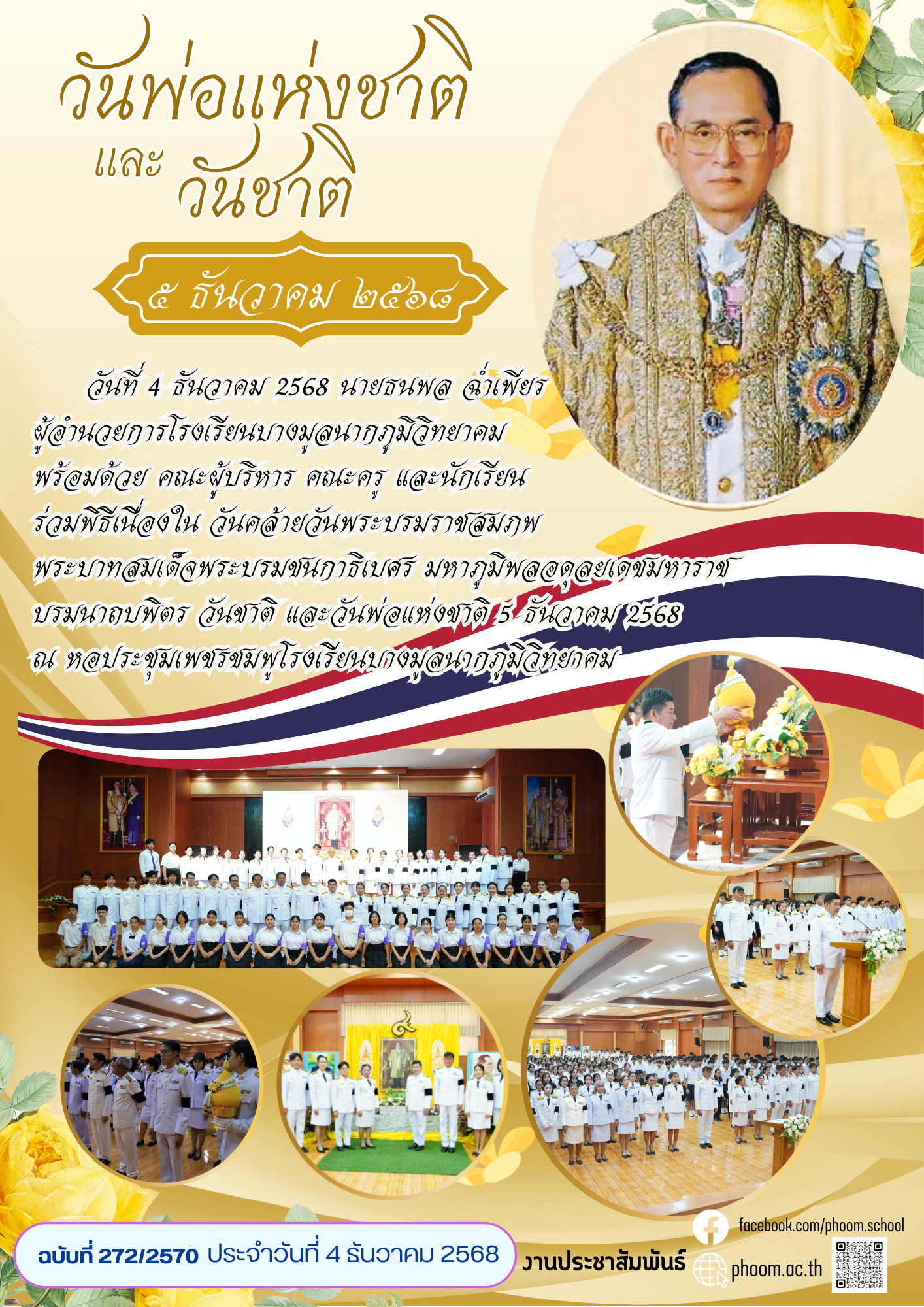 กิจกรรมเนื่องในวันคล้ายวันพระบรมราชสมภพพระบาทสมเด็จพระบรมชนกาธิเบศร มหาภูมิพลอดุลยเดชมหาราช บรมนาถบพิตร วันชาติ และวันพ่อแห่งชาติ 5 ธันวาคม 2568