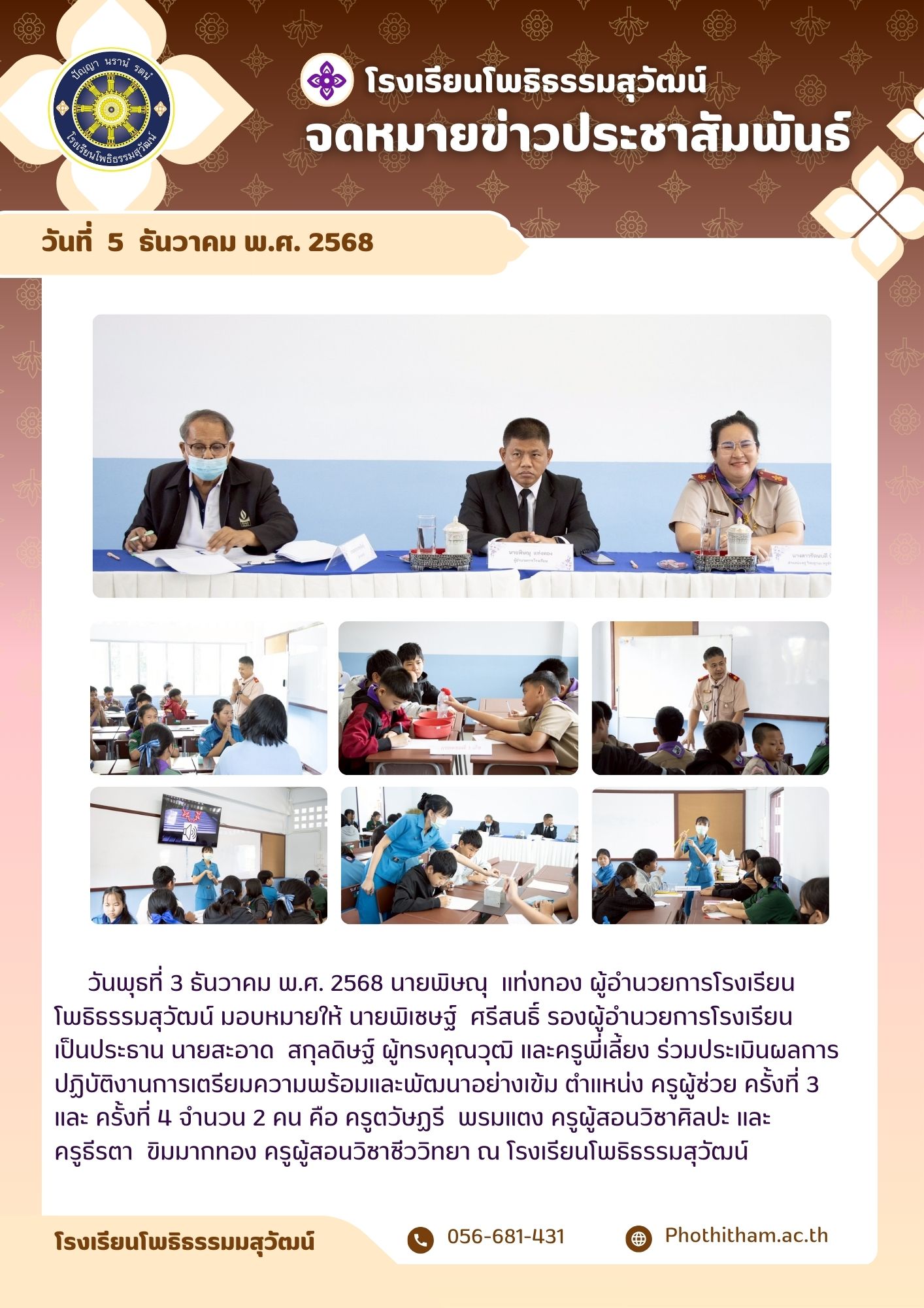 โรงเรียนทุ่งโพธิ์พิทยาได้ดำเนินการจัดการสอบปลายภาค ภาคเรียนที่ 2 ประจำปีการศึกษา 2568 เพื่อประเมินผลการเรียนรู้ของนักเรียนตามหลักสูตรสถานศึกษา และวัดผลสัมฤทธิ์ทางการเรียน