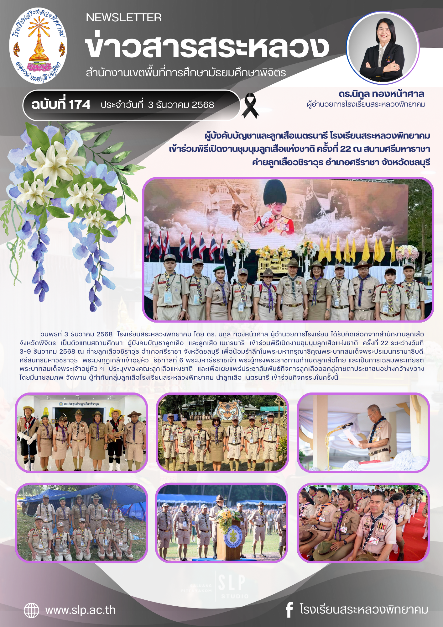 ข่าวสารสระหลวงฯ 3 ธันวาคม 2568 “ผู้บังคับบัญชาและลูกเสือเนตรนารี โรงเรียนสระหลวงพิทยาคมเข้าร่วมพิธีเปิดงานชุมนุมลูกเสือแห่งชาติ ครั้งที่ 22 ณ สนามศรีมหาราชา ค่ายลูกเสือวชิราวุธ อำเภอศรีราชา จังหวัดชลบุรี”