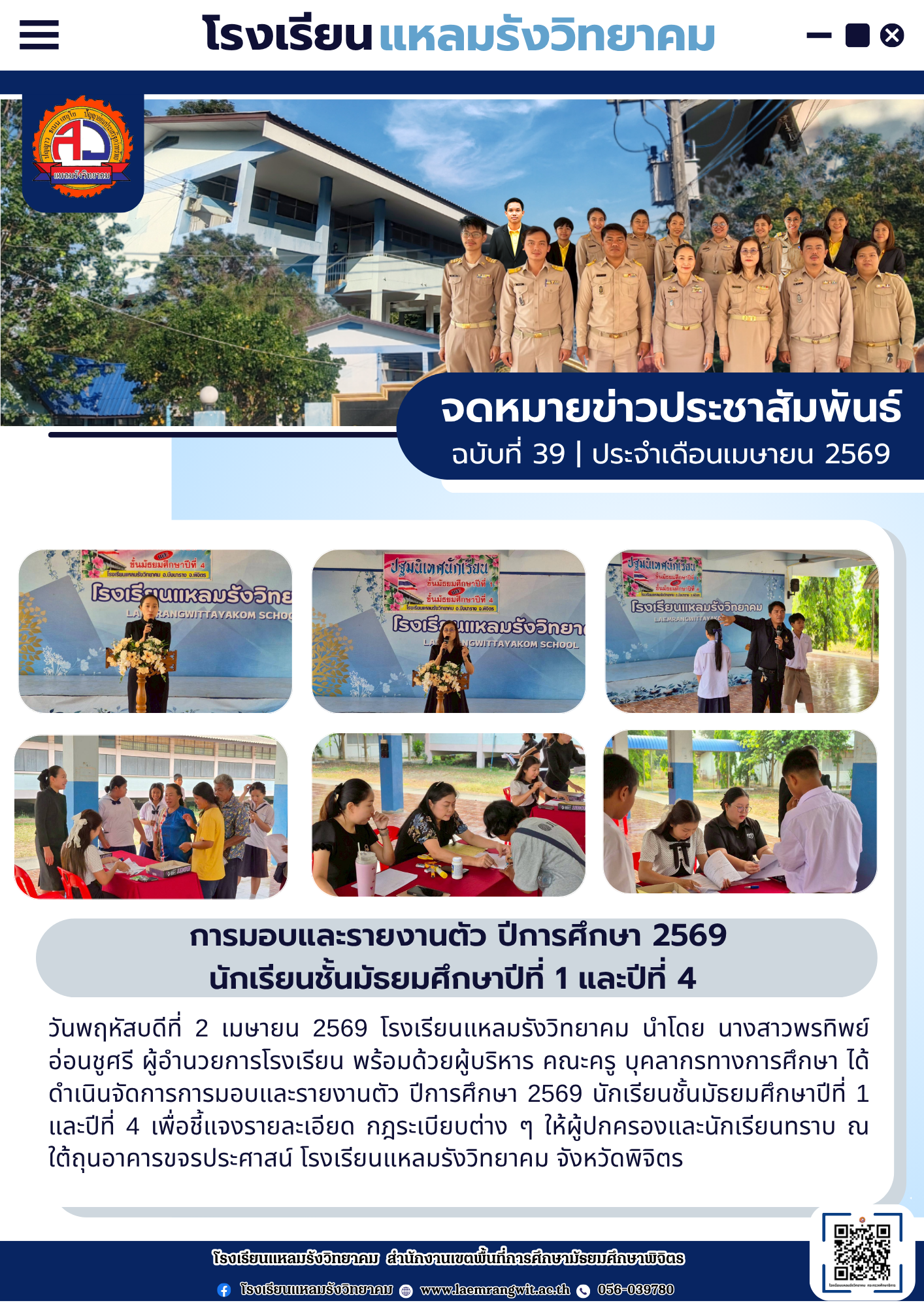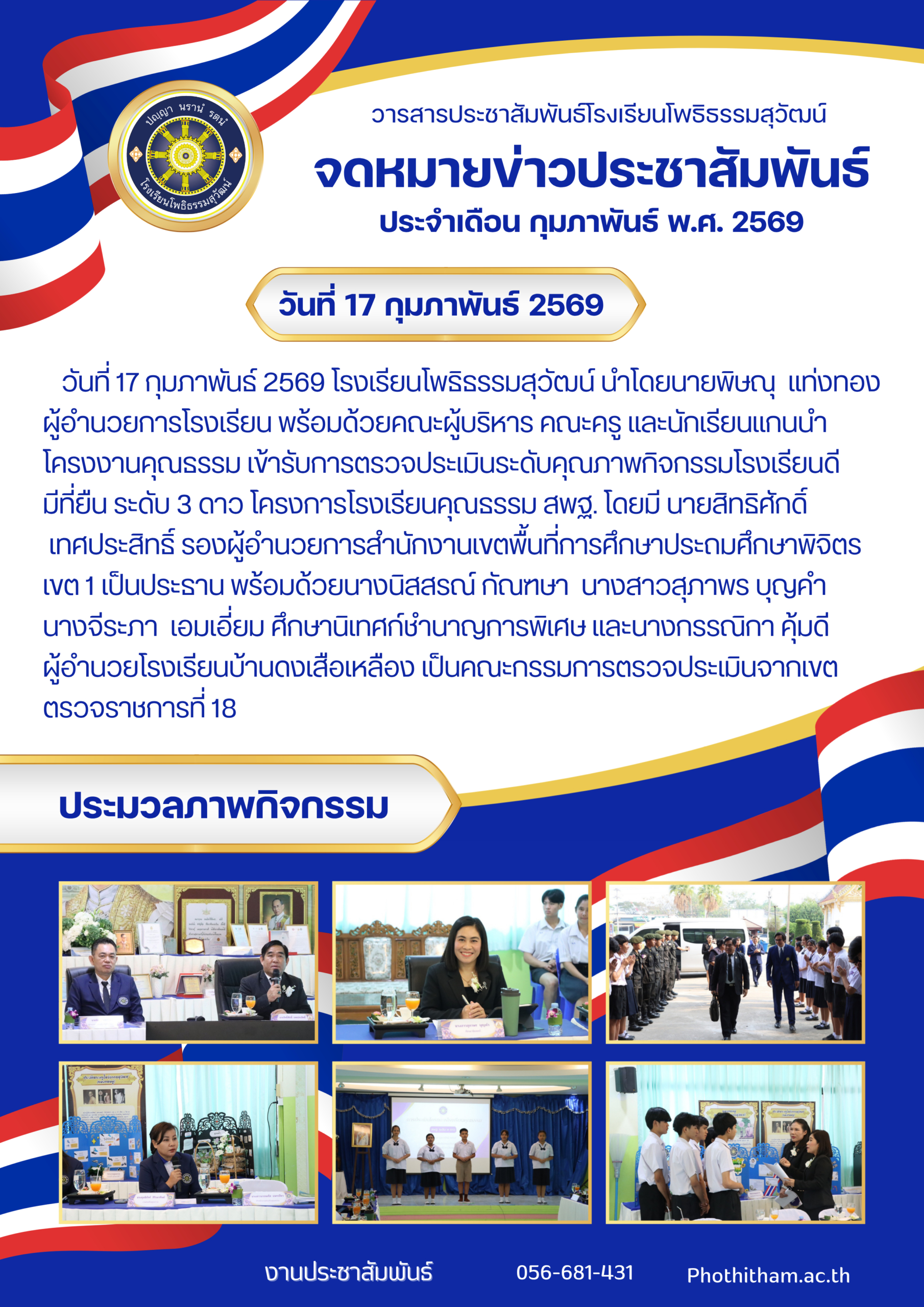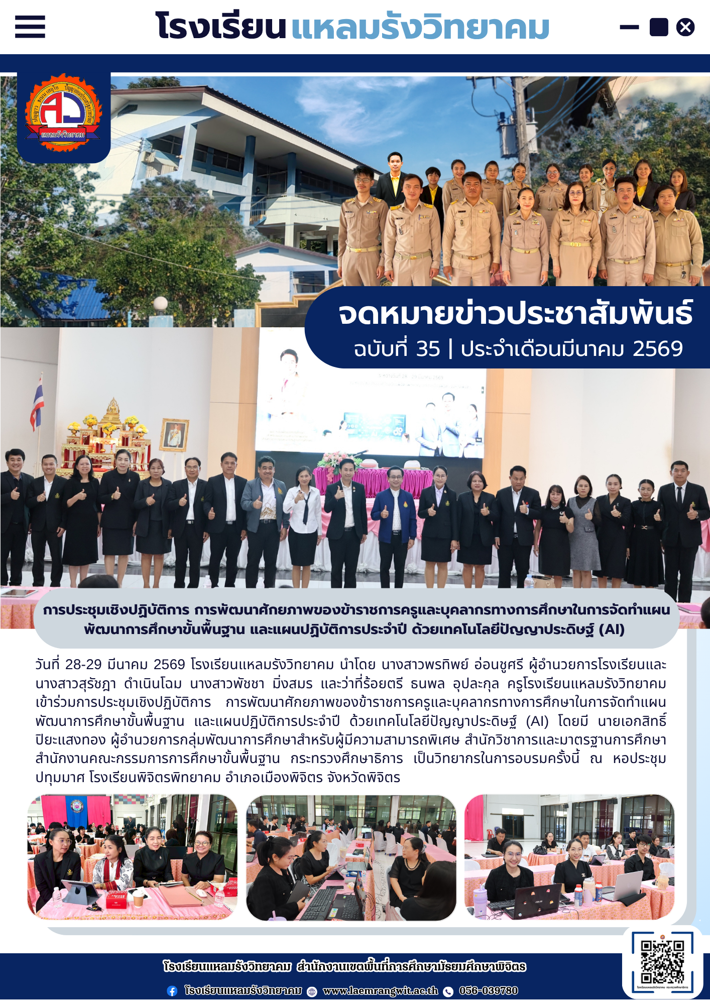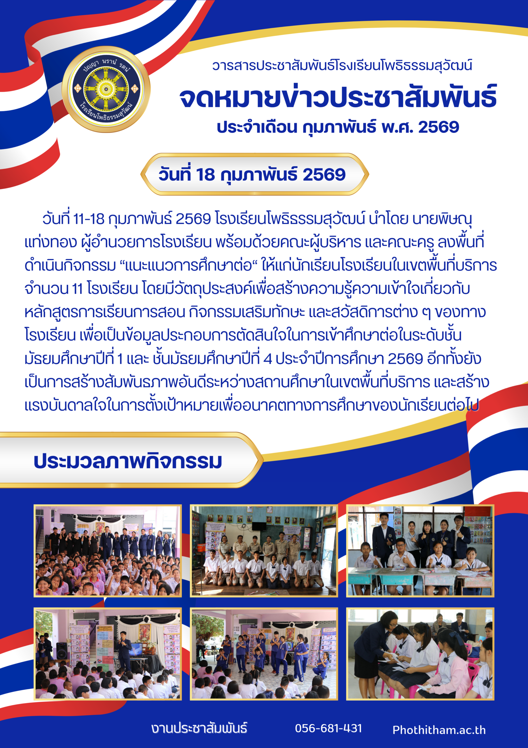 --- สำนักงานเขตพื้นที่การศึกษามัธยมศึกษาพิจิตร ยินดีต้อนรับ --- ข่าวกิจกรรมโรงเรียน สพม.พิจิตร จดหมายข่าวโรงเรียนทุ่งโพธิ์พิทยา วันที่ 3 เมษายน 2569 มอบโอกาส สานฝันทางการศึกษา… ท่าเสาพิทยาคม นำนักเรียนรับทุนการศึกษาจาก อบจ.พิจิตร โรงเรียนท่าเสาพิทยาคมร่วมขับเคลื่อนการเตรียมความพร้อม SAR! ก้าวต่อไปด้วยมาตรฐานวิชาการ พร้อมรับการประเมิน สมศ. รอบ 5! ภาคภูมิใจ! ท่าเสาพิทยาคมร่วมต้อนรับคณะกรรมการประเมินทุนพระราชทาน ม.ท.ศ. รุ่นที่ 18 จดหมายข่าวโรงเรียนแหลมรังวิทยาคม ประจำเดือนเมษายน ฉบับที่ 41/2569 วันที่ 7 เมษายน 2569 พิธีมอบหนังสือสารานุกรมไทยสำหรับเยาวชน เล่มที่ 45 ฉบับพระราชทาน การตรวจสุขภาพประจำปี 2569 การรับวุฒิการศึกษาของนักเรียนระดับชั้นมัธยมศึกษาปีที่ 3และชั้นมัธยมศึกษาปีที่ 6 ประจำปีการศึกษา 2568 การพัฒนาศักยภาพข้าราชการครูและบุคลากรทางการศึกษาในการจัดทำแผนพัฒนาการศึกษาขั้นพื้นฐานและแผนปฏิบัติการประจำปีด้วยเทคโนโลยีปัญญาประดิษฐ์ (AI) โครงการอบรมพัฒนาศักยภาพครูและบุคลากรทางการศึกษา เพื่อส่งเสริมบุคลากรสร้างเครือข่ายการเรียนรู้ มุ่งเน้นการแลกเปลี่ยน Best Practice ทางวิทยาศาสตร์ ข้อตกลงความร่วมมือในการพัฒนาการศึกษา ด้านการกีฬาในกิจกรรม “Open House และพิธีลงนามบันทึกข้อตกลงในการพัฒนาการศึกษา (MOU)” การสอบคัดเลือกนักเรียนเข้าศึกษาต่อระดับชั้นมัธยมศึกษาปีที่ 1และชั้นมัธยมศึกษาปีที่ 4 เข้าร่วมการประชุมเชิงปฏิบัติการการป้องกันและแก้ไขปัญหายาเสพติดในสถานศึกษา การประเมินโครงการสถานศึกษาสีขาว ปลอดยาเสพติดและอบายมุข “ระดับเพชร” การอบรมเสริมสร้างธรรมาภิบาลในการปฏิบัติราชการ สำหรับข้าราชครูและบุคลากรทางการศึกษา การสอบปลายภาคเรียนที่ 2 ประจำปีการศึกษา 2568 มอบเกียรติบัตรแก่ “คณะกรรมการสภานักเรียนโรงเรียนโพธิธรรมสุวัฒน์ ประจำปีการศึกษา 2568” กิจกรรม “แนะแนวการศึกษาต่อ” กิจกรรมปัจฉิมนิเทศและพิธีมอบประกาศนียบัตรแก่ผู้สำเร็จการศึกษาระดับชั้นมัธยมศึกษาปีที่ 3 และระดับชั้นมัธยมศึกษาปีที่ 6 ประจำปีการศึกษา 2568 โครงงานคุณธรรม เข้ารับการตรวจประเมินระดับคุณภาพกิจกรรมโรงเรียนดี จัดกิจกรรม วันตรุษจีน “春节” ต้อนรับปีม้าไฟ กิจกรรมตามโครงการ “ติวเข้มเติมเต็มความรู้” เพื่อเตรียมความพร้อมและยกระดับผลสัมฤทธิ์ทางการเรียนให้นักเรียนชั้นมัธยมศึกษาปีที่ 3 และมัธยมศึกษาปีที่ 6 ปีการศึกษา 2568 กิจกรรมนิทรรศการวิชาการ “เปิดโลกวิชาการ เปิดบ้านคุณธรรม” ประจำปีการศึกษา 2568 จัดกิจกรรมรณรงค์สร้างความรู้และความเข้าใจเกี่ยวกับการเลือกตั้ง จดหมายข่