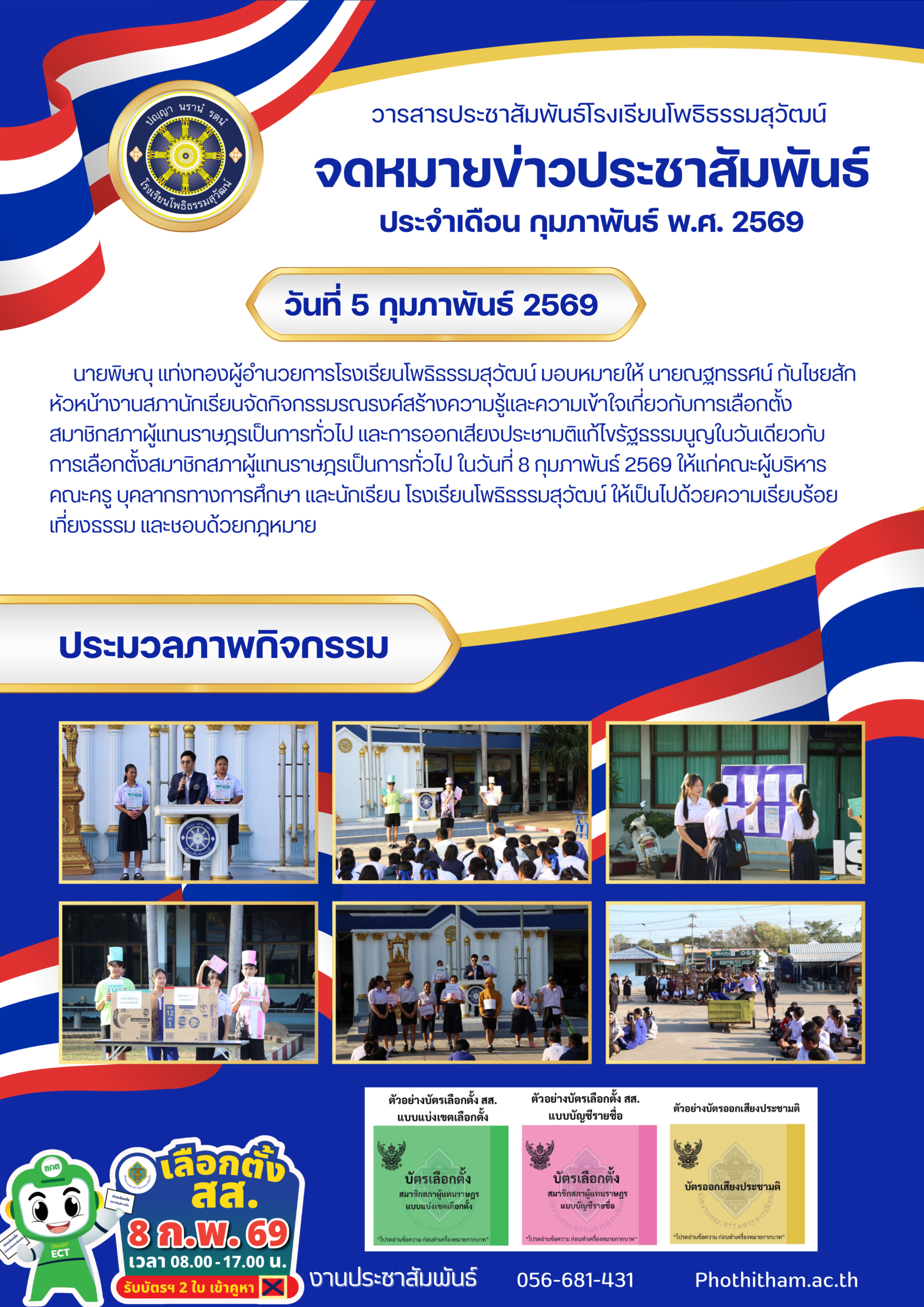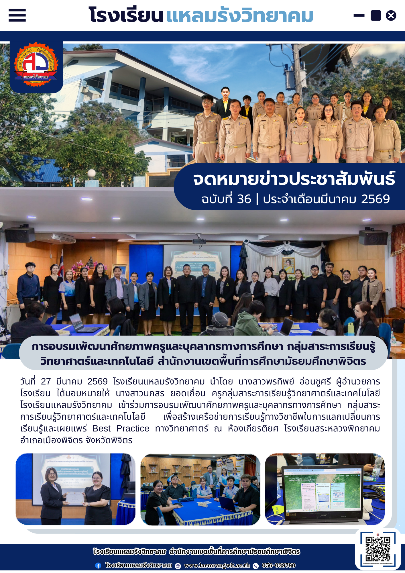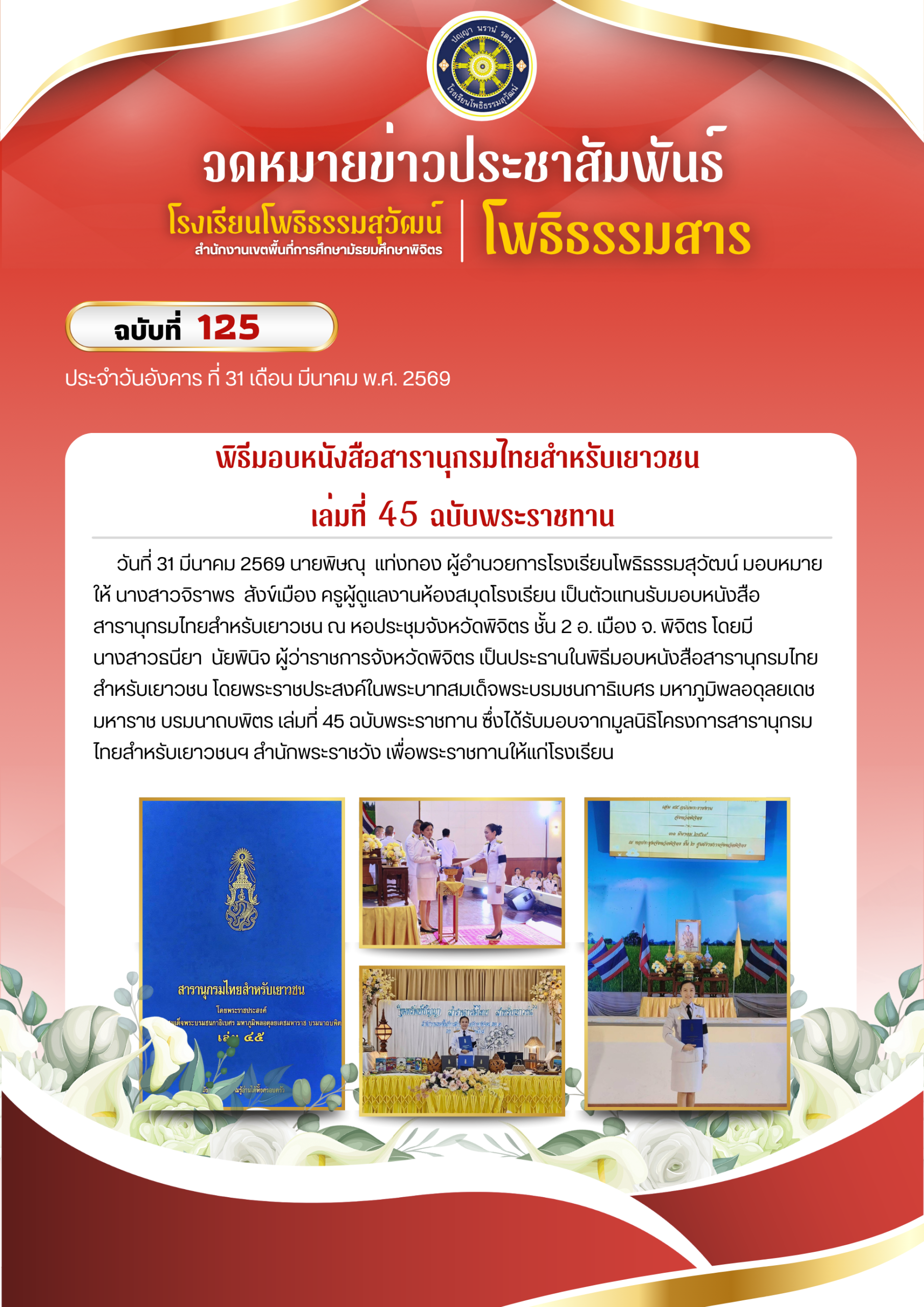 --- สำนักงานเขตพื้นที่การศึกษามัธยมศึกษาพิจิตร ยินดีต้อนรับ --- ข่าวกิจกรรมโรงเรียน สพม.พิจิตร จดหมายข่าวโรงเรียนทุ่งโพธิ์พิทยา วันที่ 3 เมษายน 2569 มอบโอกาส สานฝันทางการศึกษา… ท่าเสาพิทยาคม นำนักเรียนรับทุนการศึกษาจาก อบจ.พิจิตร โรงเรียนท่าเสาพิทยาคมร่วมขับเคลื่อนการเตรียมความพร้อม SAR! ก้าวต่อไปด้วยมาตรฐานวิชาการ พร้อมรับการประเมิน สมศ. รอบ 5! ภาคภูมิใจ! ท่าเสาพิทยาคมร่วมต้อนรับคณะกรรมการประเมินทุนพระราชทาน ม.ท.ศ. รุ่นที่ 18 จดหมายข่าวโรงเรียนแหลมรังวิทยาคม ประจำเดือนเมษายน ฉบับที่ 41/2569 วันที่ 7 เมษายน 2569 พิธีมอบหนังสือสารานุกรมไทยสำหรับเยาวชน เล่มที่ 45 ฉบับพระราชทาน การตรวจสุขภาพประจำปี 2569 การรับวุฒิการศึกษาของนักเรียนระดับชั้นมัธยมศึกษาปีที่ 3และชั้นมัธยมศึกษาปีที่ 6 ประจำปีการศึกษา 2568 การพัฒนาศักยภาพข้าราชการครูและบุคลากรทางการศึกษาในการจัดทำแผนพัฒนาการศึกษาขั้นพื้นฐานและแผนปฏิบัติการประจำปีด้วยเทคโนโลยีปัญญาประดิษฐ์ (AI) โครงการอบรมพัฒนาศักยภาพครูและบุคลากรทางการศึกษา เพื่อส่งเสริมบุคลากรสร้างเครือข่ายการเรียนรู้ มุ่งเน้นการแลกเปลี่ยน Best Practice ทางวิทยาศาสตร์ ข้อตกลงความร่วมมือในการพัฒนาการศึกษา ด้านการกีฬาในกิจกรรม “Open House และพิธีลงนามบันทึกข้อตกลงในการพัฒนาการศึกษา (MOU)” การสอบคัดเลือกนักเรียนเข้าศึกษาต่อระดับชั้นมัธยมศึกษาปีที่ 1และชั้นมัธยมศึกษาปีที่ 4 เข้าร่วมการประชุมเชิงปฏิบัติการการป้องกันและแก้ไขปัญหายาเสพติดในสถานศึกษา การประเมินโครงการสถานศึกษาสีขาว ปลอดยาเสพติดและอบายมุข “ระดับเพชร” การอบรมเสริมสร้างธรรมาภิบาลในการปฏิบัติราชการ สำหรับข้าราชครูและบุคลากรทางการศึกษา การสอบปลายภาคเรียนที่ 2 ประจำปีการศึกษา 2568 มอบเกียรติบัตรแก่ “คณะกรรมการสภานักเรียนโรงเรียนโพธิธรรมสุวัฒน์ ประจำปีการศึกษา 2568” กิจกรรม “แนะแนวการศึกษาต่อ” กิจกรรมปัจฉิมนิเทศและพิธีมอบประกาศนียบัตรแก่ผู้สำเร็จการศึกษาระดับชั้นมัธยมศึกษาปีที่ 3 และระดับชั้นมัธยมศึกษาปีที่ 6 ประจำปีการศึกษา 2568 โครงงานคุณธรรม เข้ารับการตรวจประเมินระดับคุณภาพกิจกรรมโรงเรียนดี จัดกิจกรรม วันตรุษจีน “春节” ต้อนรับปีม้าไฟ กิจกรรมตามโครงการ “ติวเข้มเติมเต็มความรู้” เพื่อเตรียมความพร้อมและยกระดับผลสัมฤทธิ์ทางการเรียนให้นักเรียนชั้นมัธยมศึกษาปีที่ 3 และมัธยมศึกษาปีที่ 6 ปีการศึกษา 2568 กิจกรรมนิทรรศการวิชาการ “เปิดโลกวิชาการ เปิดบ้านคุณธรรม” ประจำปีการศึกษา 2568 จัดกิจกรรมรณรงค์สร้างความรู้และความเข้าใจเกี่ยวกับการเลือกตั้ง จดหมายข่