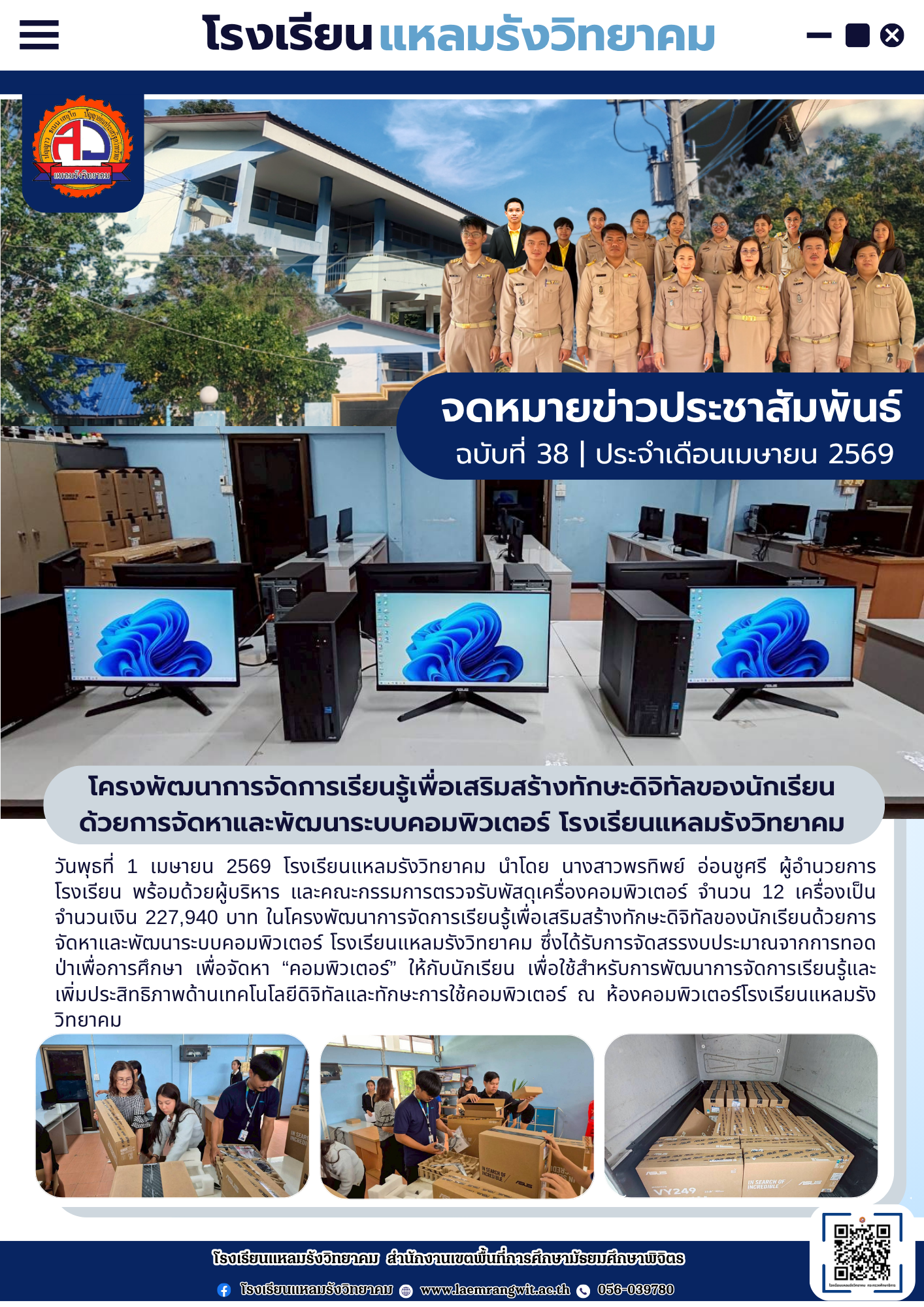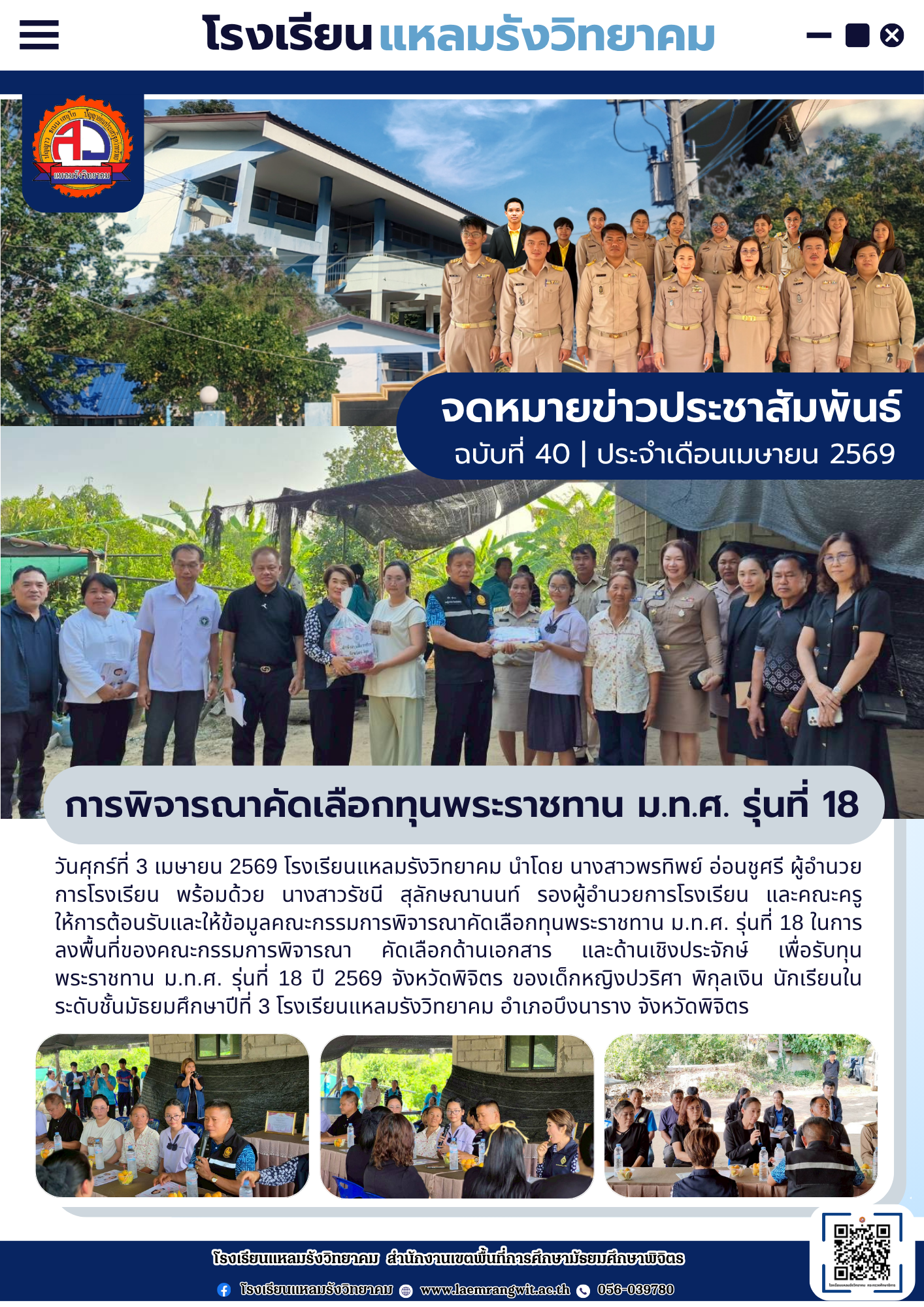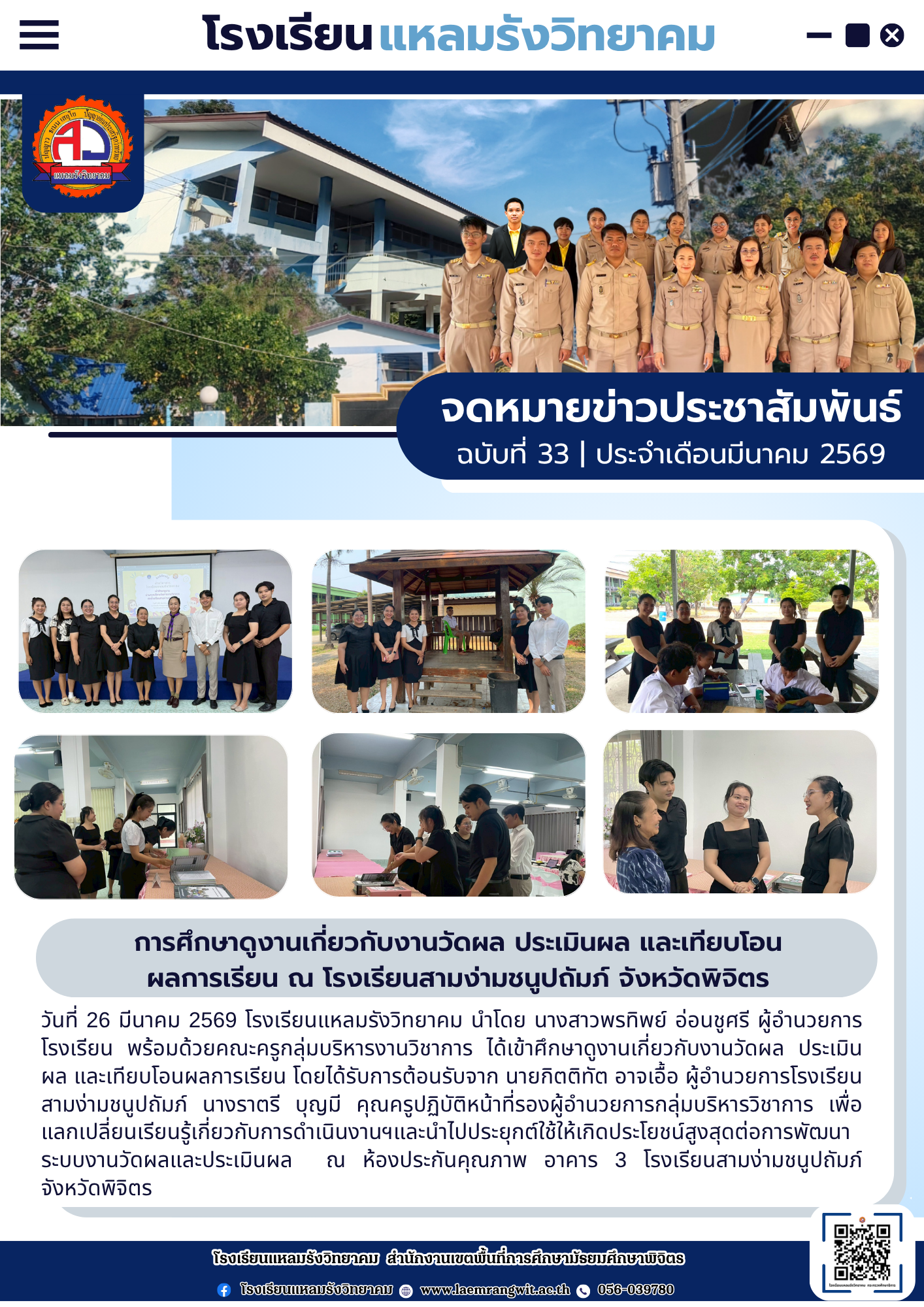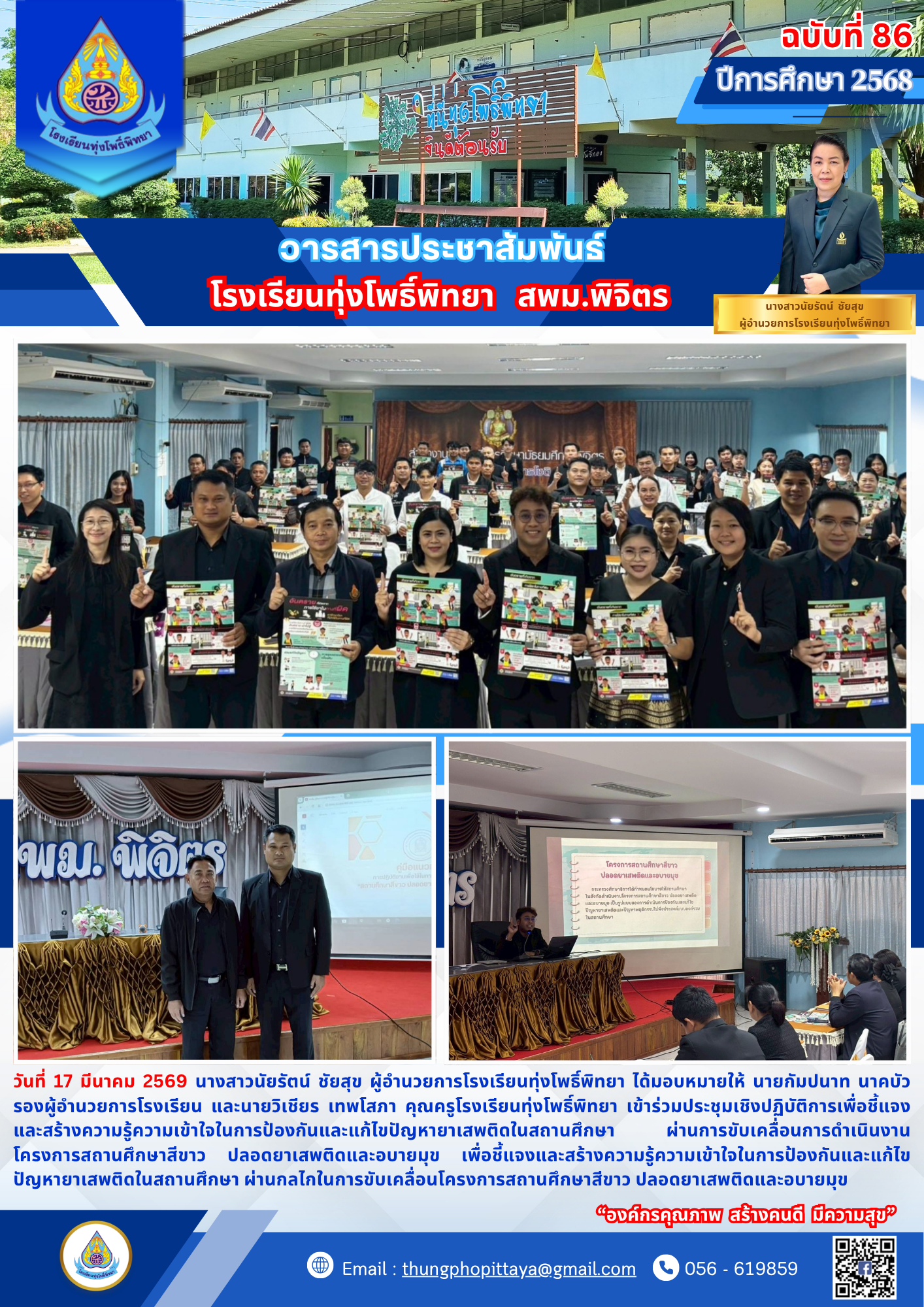 --- สำนักงานเขตพื้นที่การศึกษามัธยมศึกษาพิจิตร ยินดีต้อนรับ --- ข่าวกิจกรรมโรงเรียน สพม.พิจิตร จดหมายข่าวโรงเรียนทุ่งโพธิ์พิทยา วันที่ 3 เมษายน 2569 มอบโอกาส สานฝันทางการศึกษา… ท่าเสาพิทยาคม นำนักเรียนรับทุนการศึกษาจาก อบจ.พิจิตร โรงเรียนท่าเสาพิทยาคมร่วมขับเคลื่อนการเตรียมความพร้อม SAR! ก้าวต่อไปด้วยมาตรฐานวิชาการ พร้อมรับการประเมิน สมศ. รอบ 5! ภาคภูมิใจ! ท่าเสาพิทยาคมร่วมต้อนรับคณะกรรมการประเมินทุนพระราชทาน ม.ท.ศ. รุ่นที่ 18 จดหมายข่าวโรงเรียนแหลมรังวิทยาคม ประจำเดือนเมษายน ฉบับที่ 41/2569 วันที่ 7 เมษายน 2569 พิธีมอบหนังสือสารานุกรมไทยสำหรับเยาวชน เล่มที่ 45 ฉบับพระราชทาน การตรวจสุขภาพประจำปี 2569 การรับวุฒิการศึกษาของนักเรียนระดับชั้นมัธยมศึกษาปีที่ 3และชั้นมัธยมศึกษาปีที่ 6 ประจำปีการศึกษา 2568 การพัฒนาศักยภาพข้าราชการครูและบุคลากรทางการศึกษาในการจัดทำแผนพัฒนาการศึกษาขั้นพื้นฐานและแผนปฏิบัติการประจำปีด้วยเทคโนโลยีปัญญาประดิษฐ์ (AI) โครงการอบรมพัฒนาศักยภาพครูและบุคลากรทางการศึกษา เพื่อส่งเสริมบุคลากรสร้างเครือข่ายการเรียนรู้ มุ่งเน้นการแลกเปลี่ยน Best Practice ทางวิทยาศาสตร์ ข้อตกลงความร่วมมือในการพัฒนาการศึกษา ด้านการกีฬาในกิจกรรม “Open House และพิธีลงนามบันทึกข้อตกลงในการพัฒนาการศึกษา (MOU)” การสอบคัดเลือกนักเรียนเข้าศึกษาต่อระดับชั้นมัธยมศึกษาปีที่ 1และชั้นมัธยมศึกษาปีที่ 4 เข้าร่วมการประชุมเชิงปฏิบัติการการป้องกันและแก้ไขปัญหายาเสพติดในสถานศึกษา การประเมินโครงการสถานศึกษาสีขาว ปลอดยาเสพติดและอบายมุข “ระดับเพชร” การอบรมเสริมสร้างธรรมาภิบาลในการปฏิบัติราชการ สำหรับข้าราชครูและบุคลากรทางการศึกษา การสอบปลายภาคเรียนที่ 2 ประจำปีการศึกษา 2568 มอบเกียรติบัตรแก่ “คณะกรรมการสภานักเรียนโรงเรียนโพธิธรรมสุวัฒน์ ประจำปีการศึกษา 2568” กิจกรรม “แนะแนวการศึกษาต่อ” กิจกรรมปัจฉิมนิเทศและพิธีมอบประกาศนียบัตรแก่ผู้สำเร็จการศึกษาระดับชั้นมัธยมศึกษาปีที่ 3 และระดับชั้นมัธยมศึกษาปีที่ 6 ประจำปีการศึกษา 2568 โครงงานคุณธรรม เข้ารับการตรวจประเมินระดับคุณภาพกิจกรรมโรงเรียนดี จัดกิจกรรม วันตรุษจีน “春节” ต้อนรับปีม้าไฟ กิจกรรมตามโครงการ “ติวเข้มเติมเต็มความรู้” เพื่อเตรียมความพร้อมและยกระดับผลสัมฤทธิ์ทางการเรียนให้นักเรียนชั้นมัธยมศึกษาปีที่ 3 และมัธยมศึกษาปีที่ 6 ปีการศึกษา 2568 กิจกรรมนิทรรศการวิชาการ “เปิดโลกวิชาการ เปิดบ้านคุณธรรม” ประจำปีการศึกษา 2568 จัดกิจกรรมรณรงค์สร้างความรู้และความเข้าใจเกี่ยวกับการเลือกตั้ง จดหมายข่