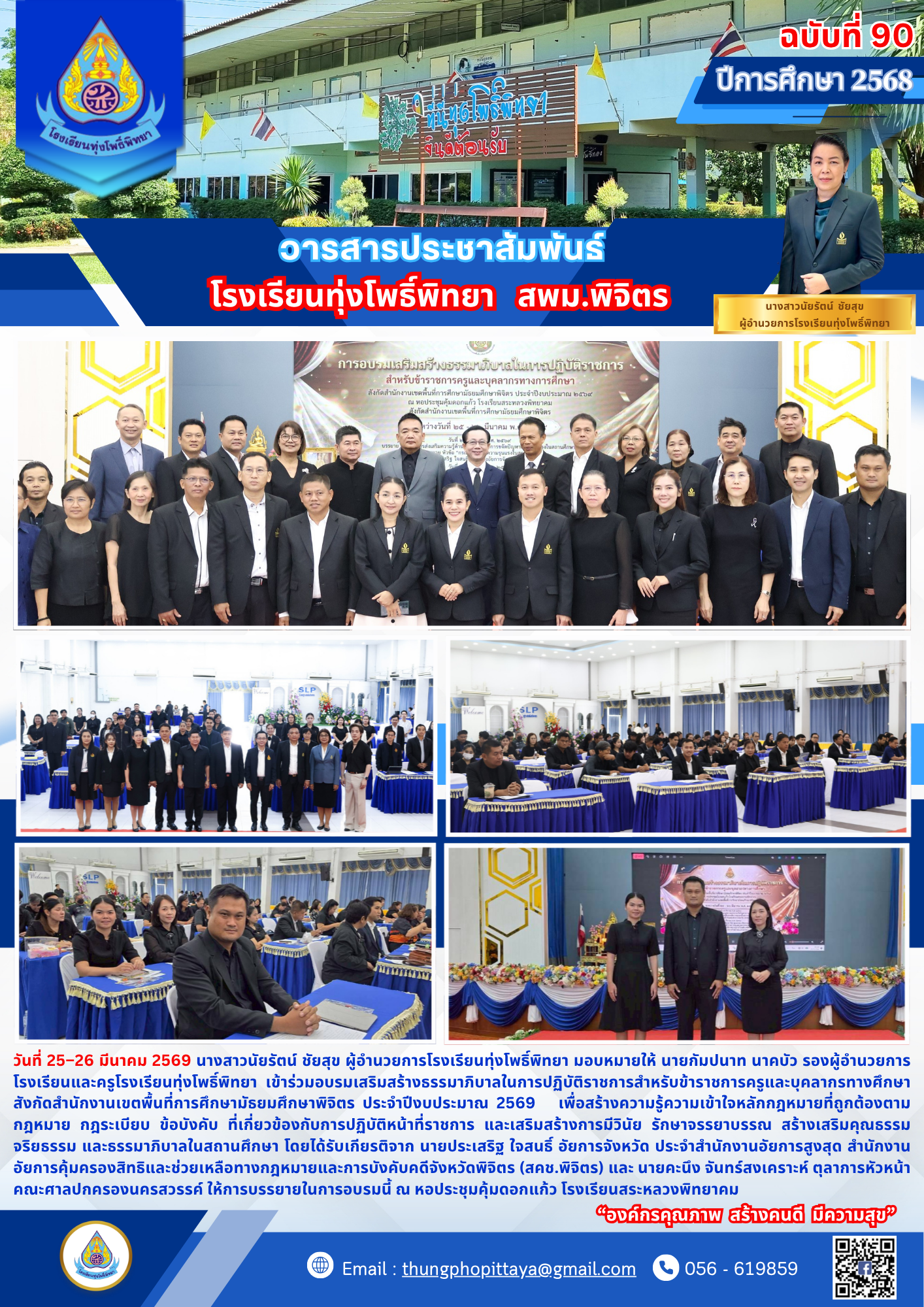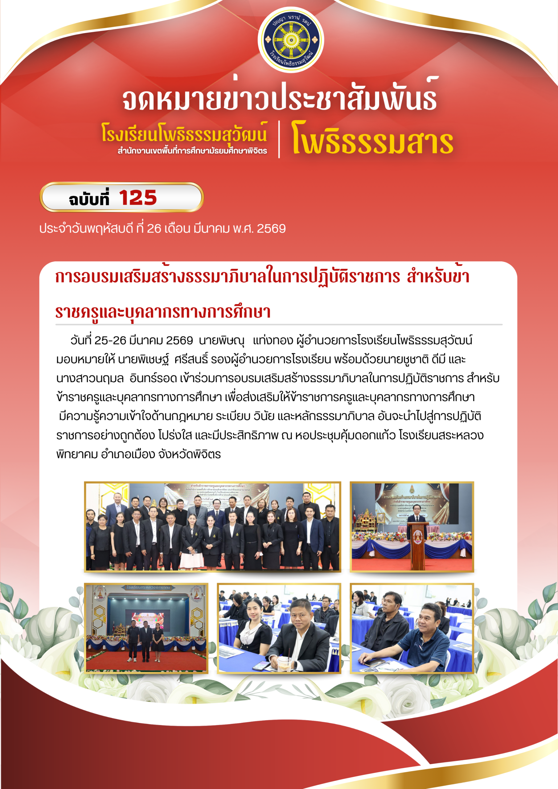 อบรมเสริมสร้างธรรมาภิบาลในการปฏิบัติราชการสำหรับข้าราชการครูและบุคลากรทางศึกษา สังกัดสำนักงานเขตพื้นที่การศึกษามัธยมศึกษาพิจิตร ประจำปีงบประมาณ 2569