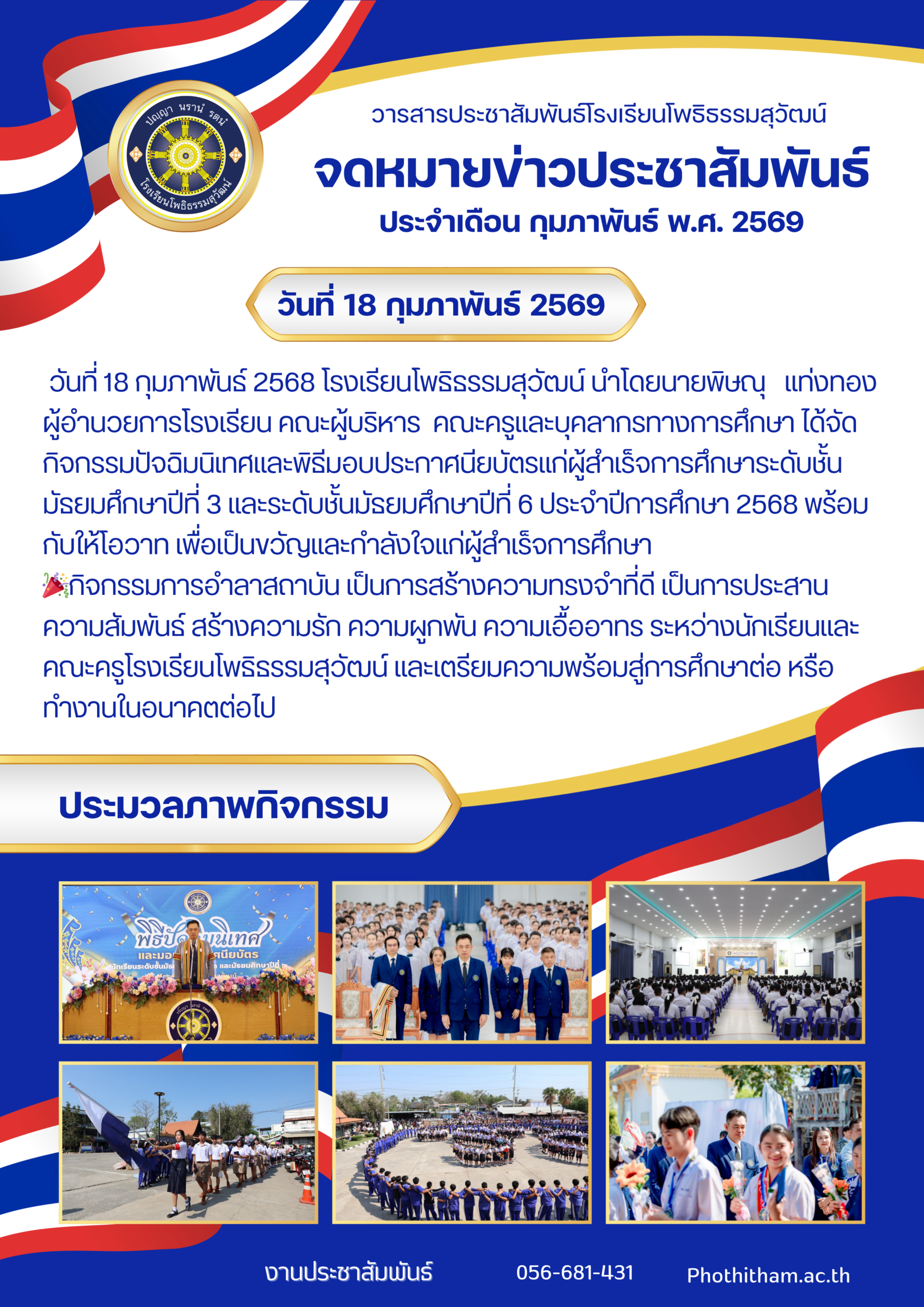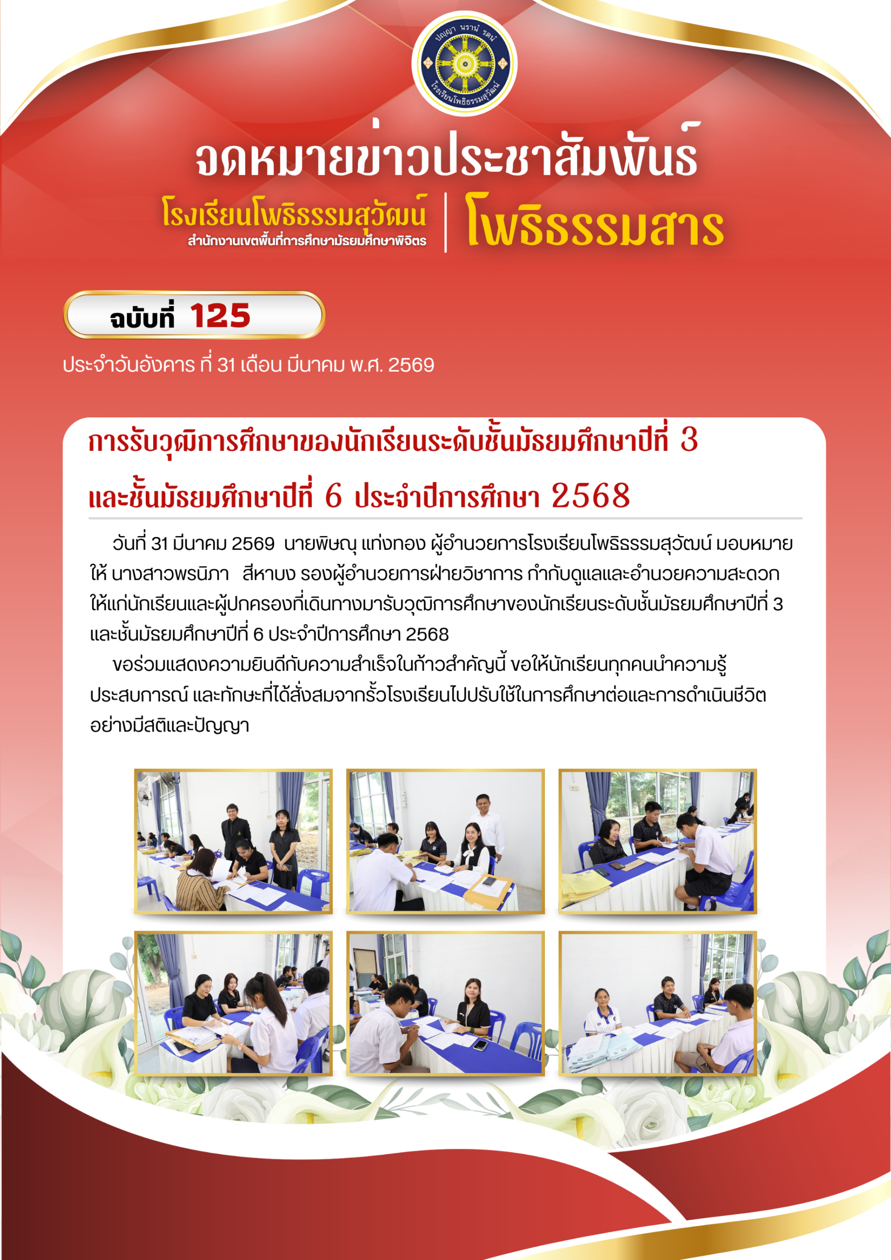 กิจกรรมปัจฉิมนิเทศและพิธีมอบประกาศนียบัตรแก่ผู้สำเร็จการศึกษาระดับชั้นมัธยมศึกษาปีที่ 3 และระดับชั้นมัธยมศึกษาปีที่ 6 ประจำปีการศึกษา 2568
