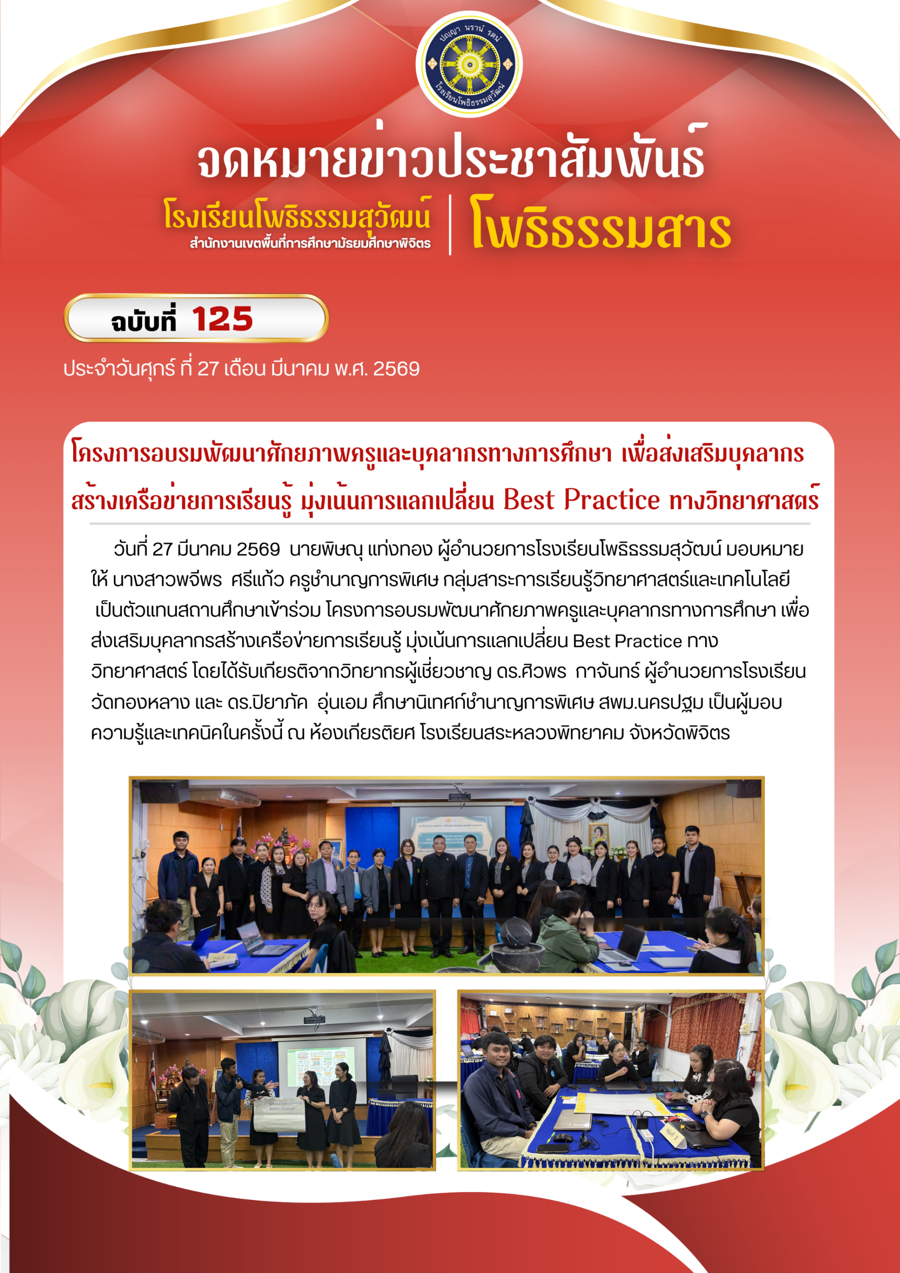 โครงการอบรมพัฒนาศักยภาพครูและบุคลากรทางการศึกษา เพื่อส่งเสริมบุคลากรสร้างเครือข่ายการเรียนรู้ มุ่งเน้นการแลกเปลี่ยน Best Practice ทางวิทยาศาสตร์