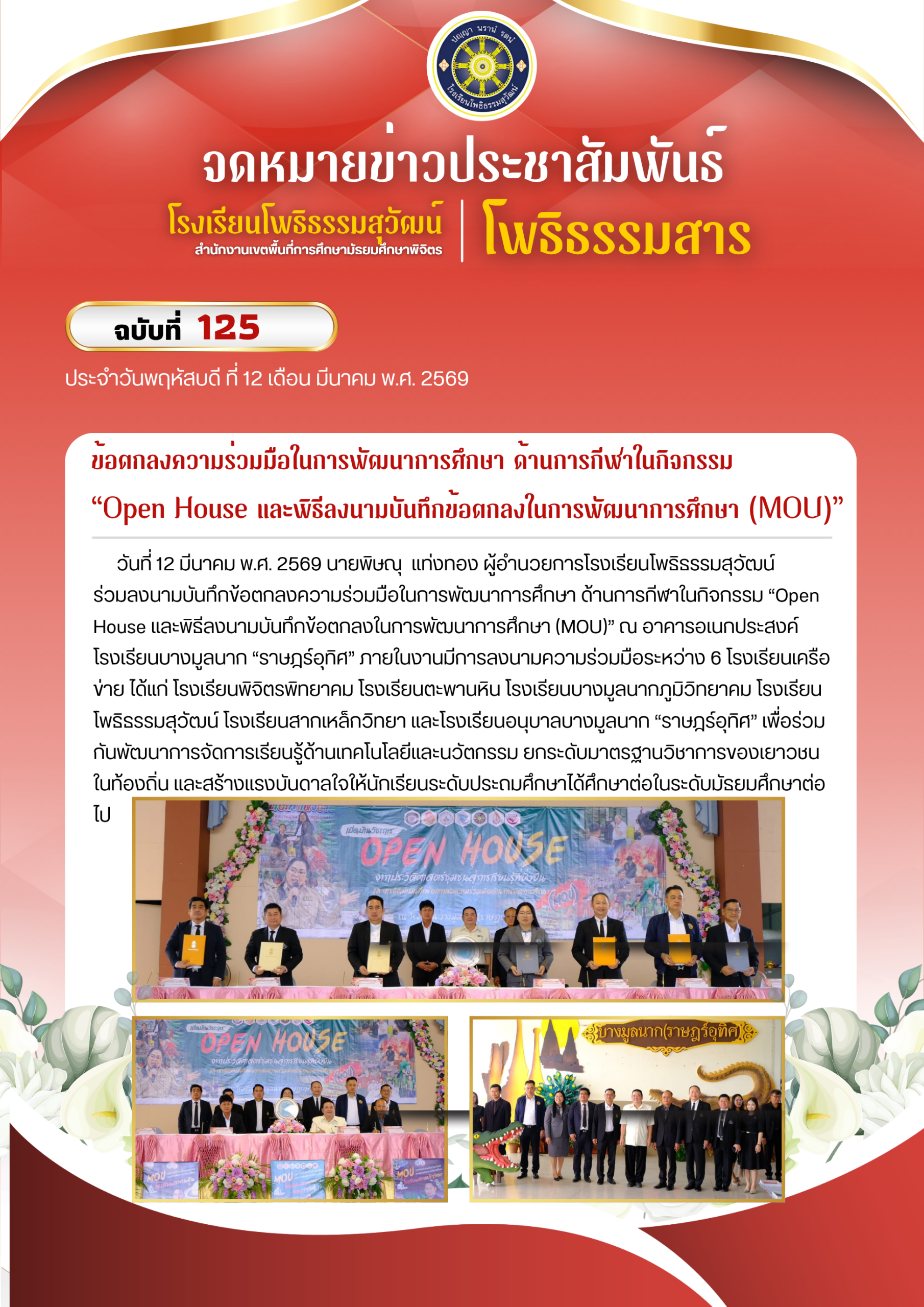 ข้อตกลงความร่วมมือในการพัฒนาการศึกษา ด้านการกีฬาในกิจกรรม “Open House และพิธีลงนามบันทึกข้อตกลงในการพัฒนาการศึกษา (MOU)”