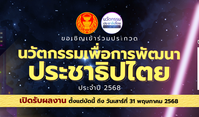 ประชาสัมพันธ์โครงการประกวดนวัตกรรมประชาธิปไตยเพื่อพัฒนาประชาธิปไตยเชิงคุณภาพ ประจำปี ๒๕๖๙ ผ่านสื่อดิจิทัลและสื่อออนไลน์ต่าง ๆ ของหน่วยงาน ตลอดจนดำเนินการติดแบนเนอร์เว็บไซต์การประกวดนวัตกรรมประชาธิปไตย เพื่อการพัฒนาประชาธิปไตย